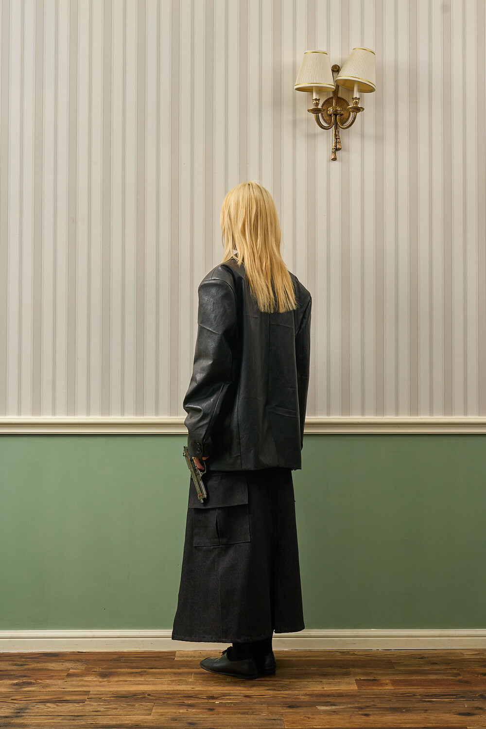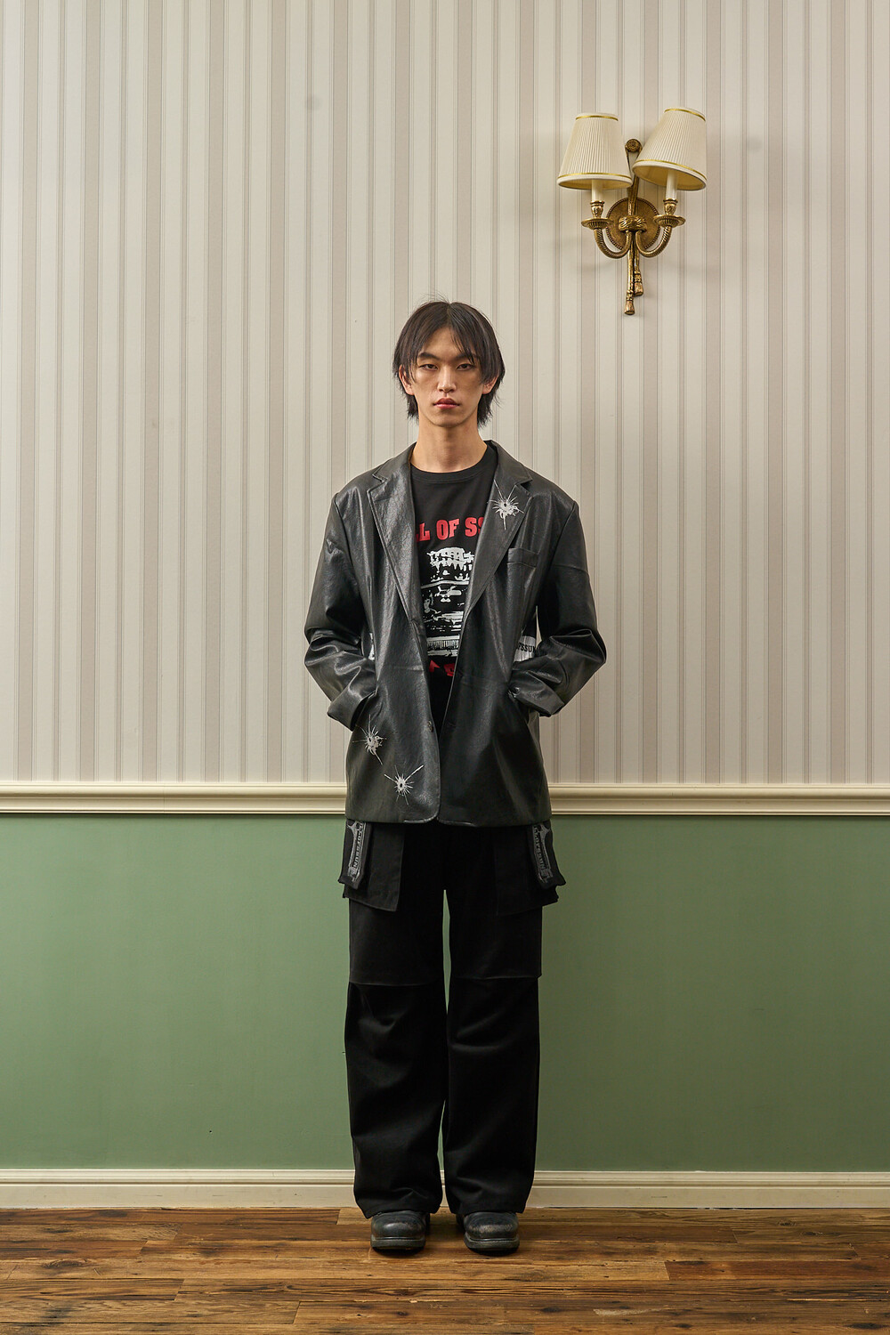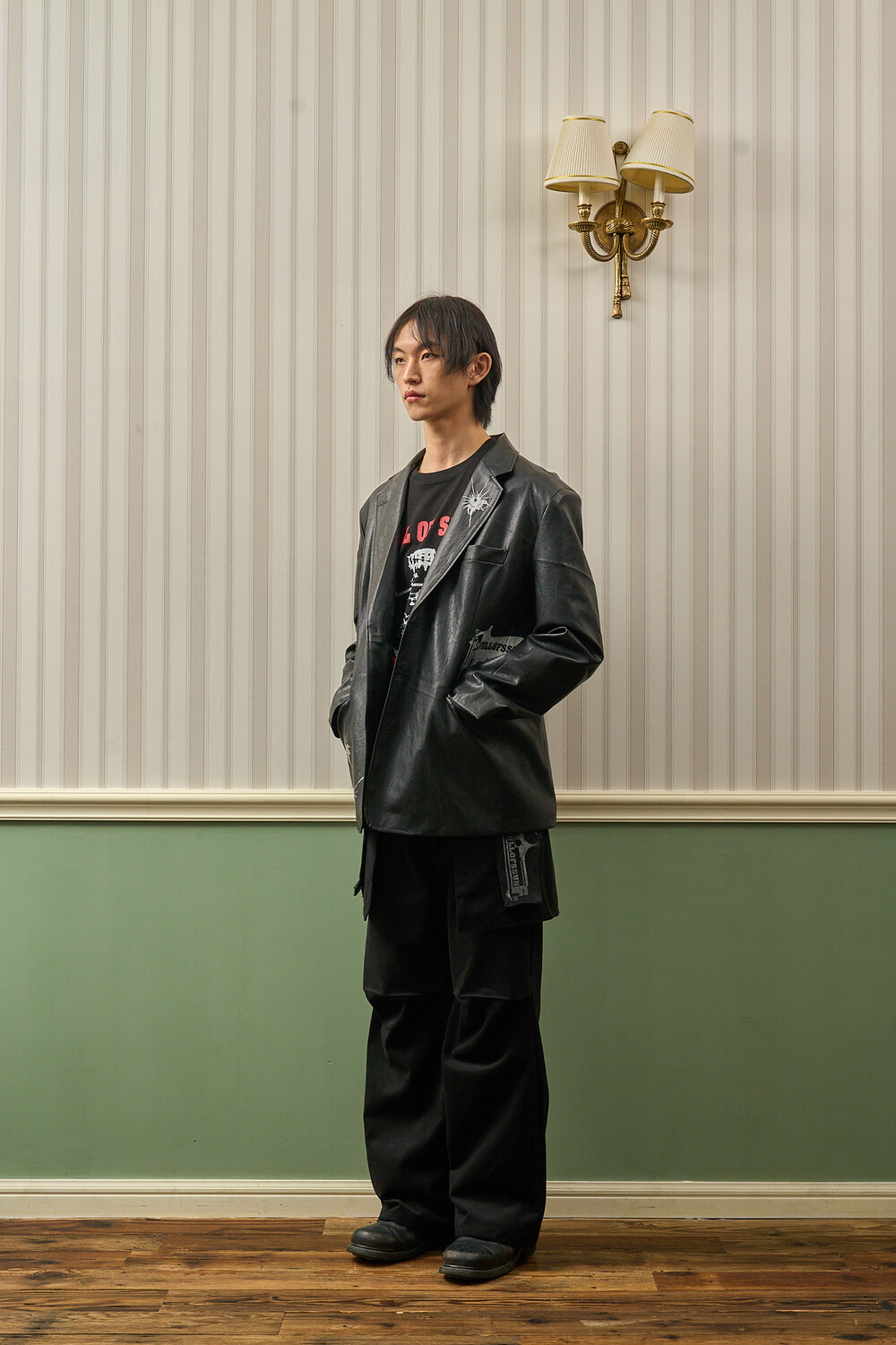 - 빈티지한 느낌의 레더 블레이져 자켓