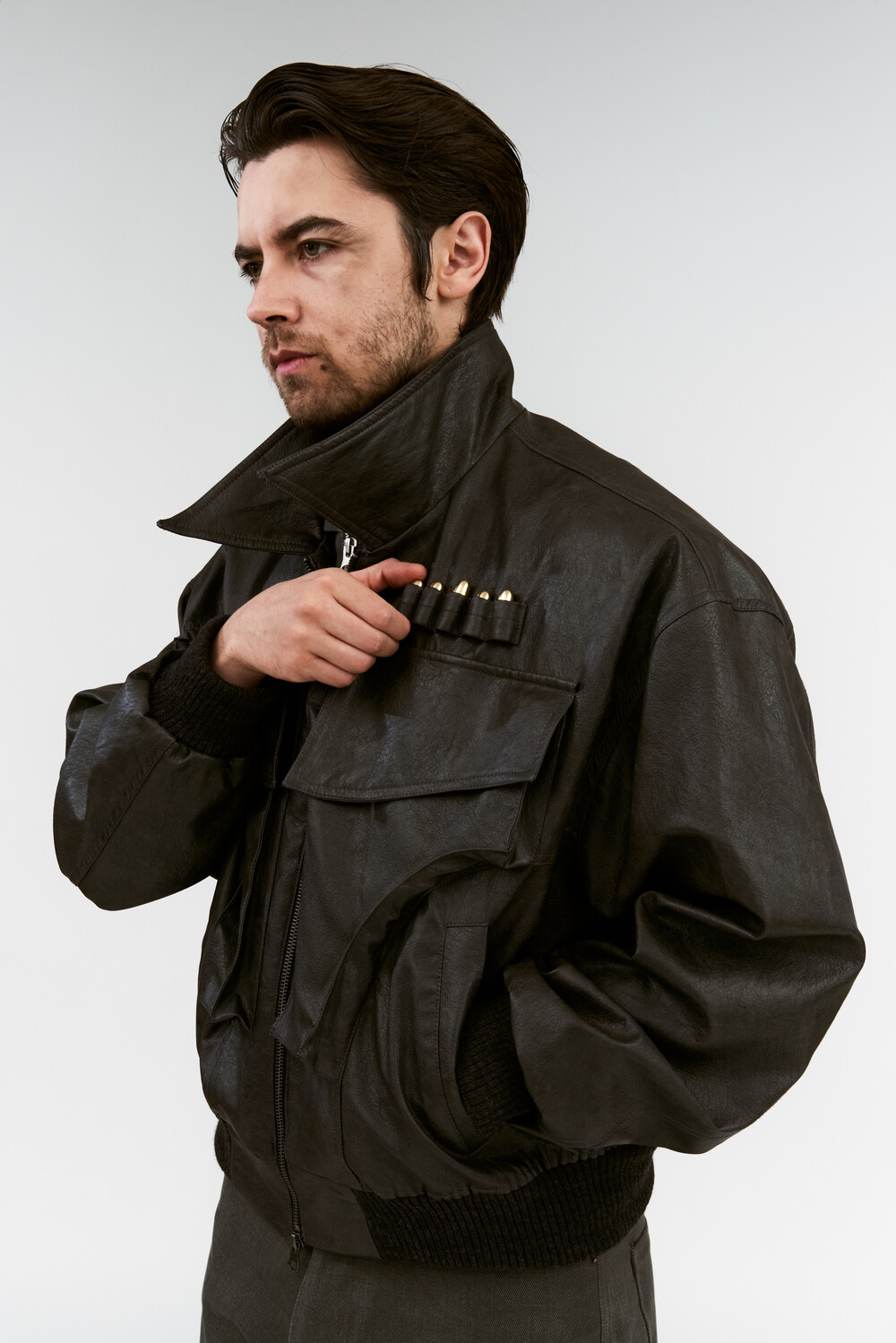 Gunpocket Leather Jacket (Grey)