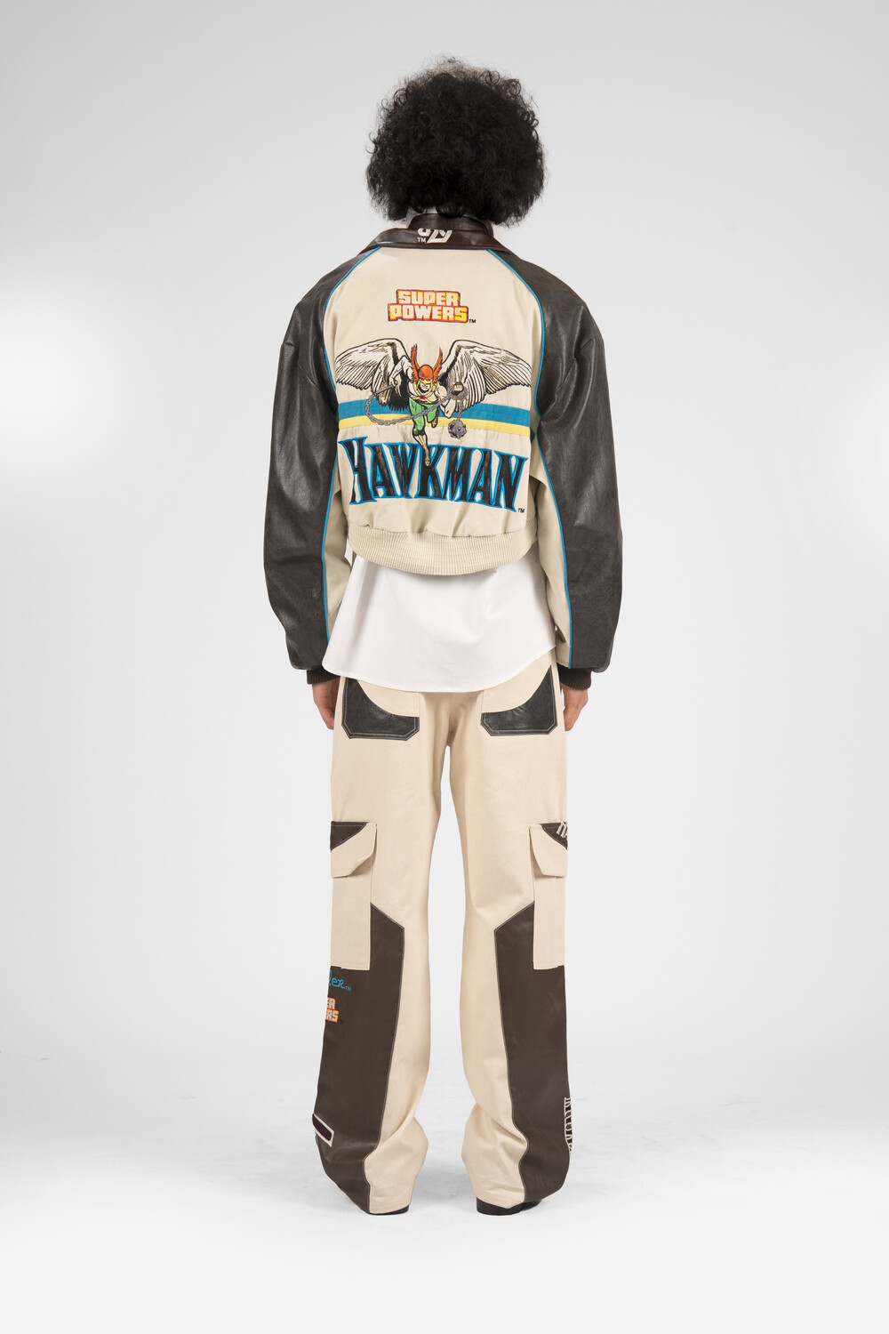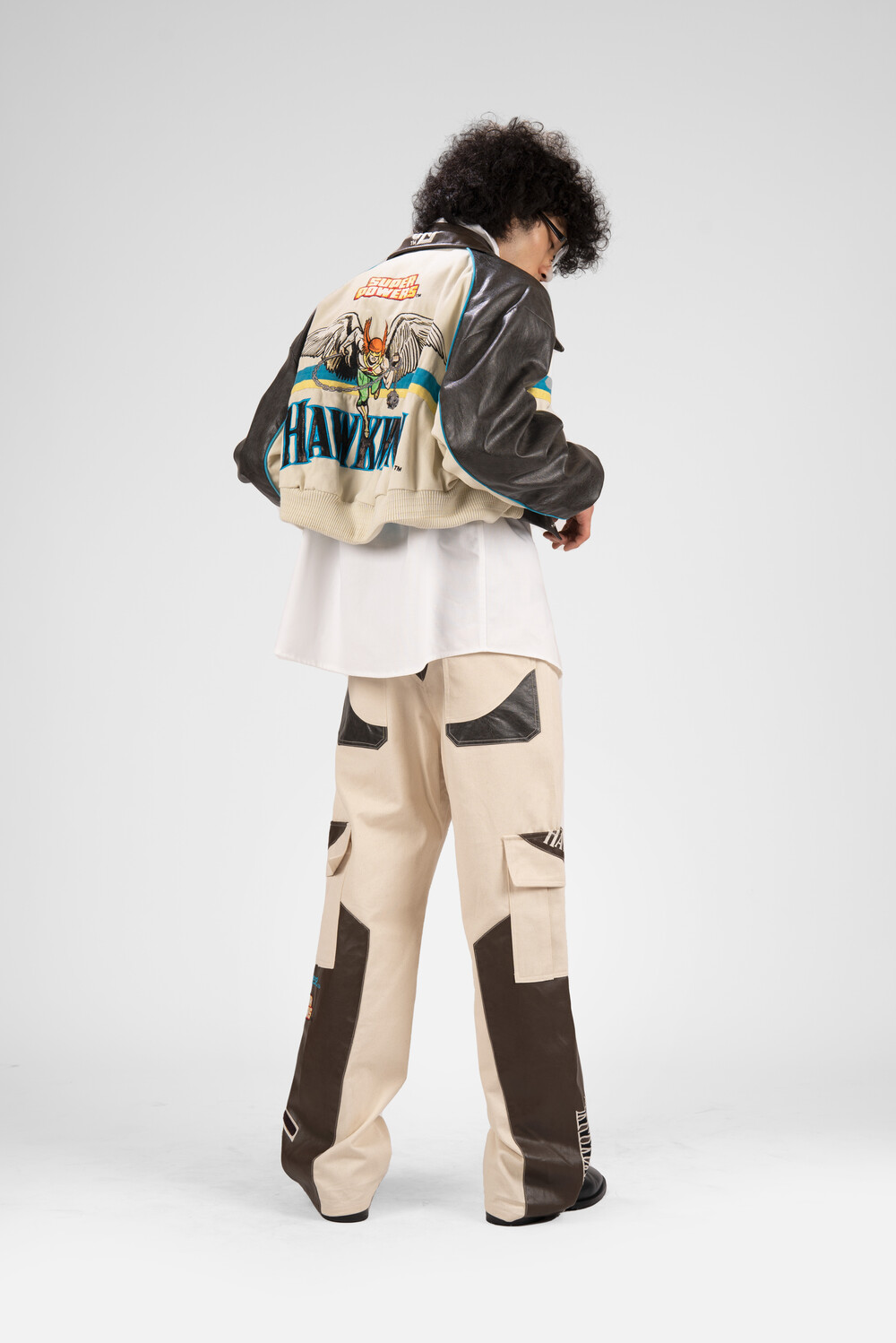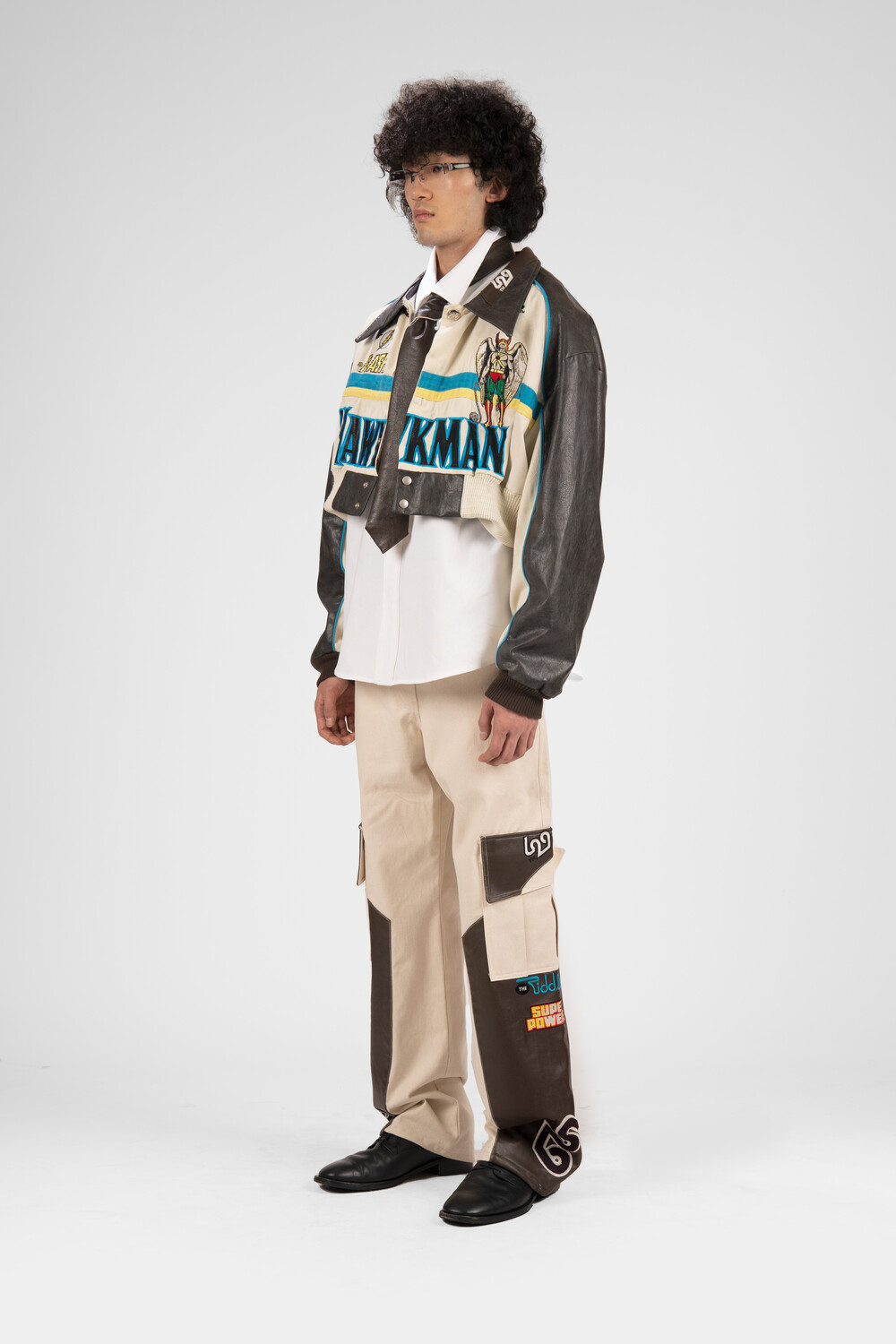 DC코믹스 사의 빈티지바시티를 리메이크하여 만든 가죽패치 디테일 카고팬츠