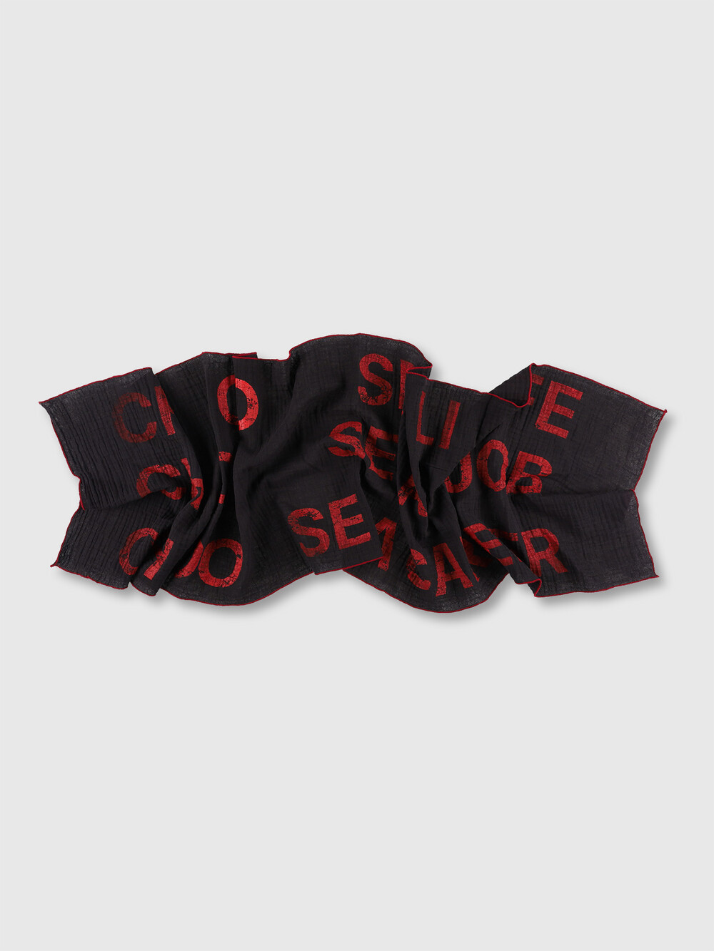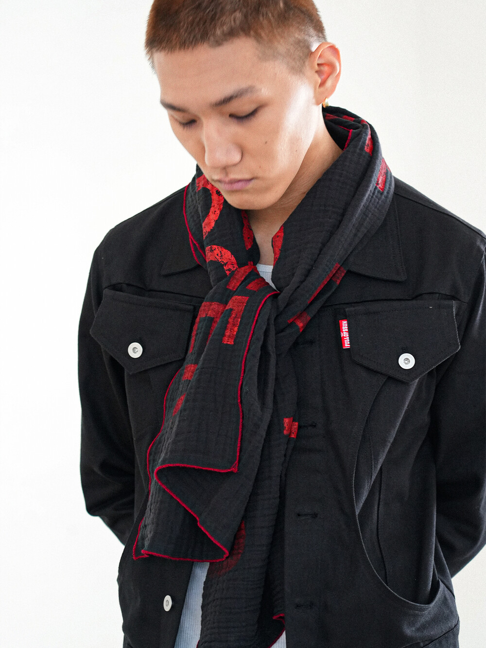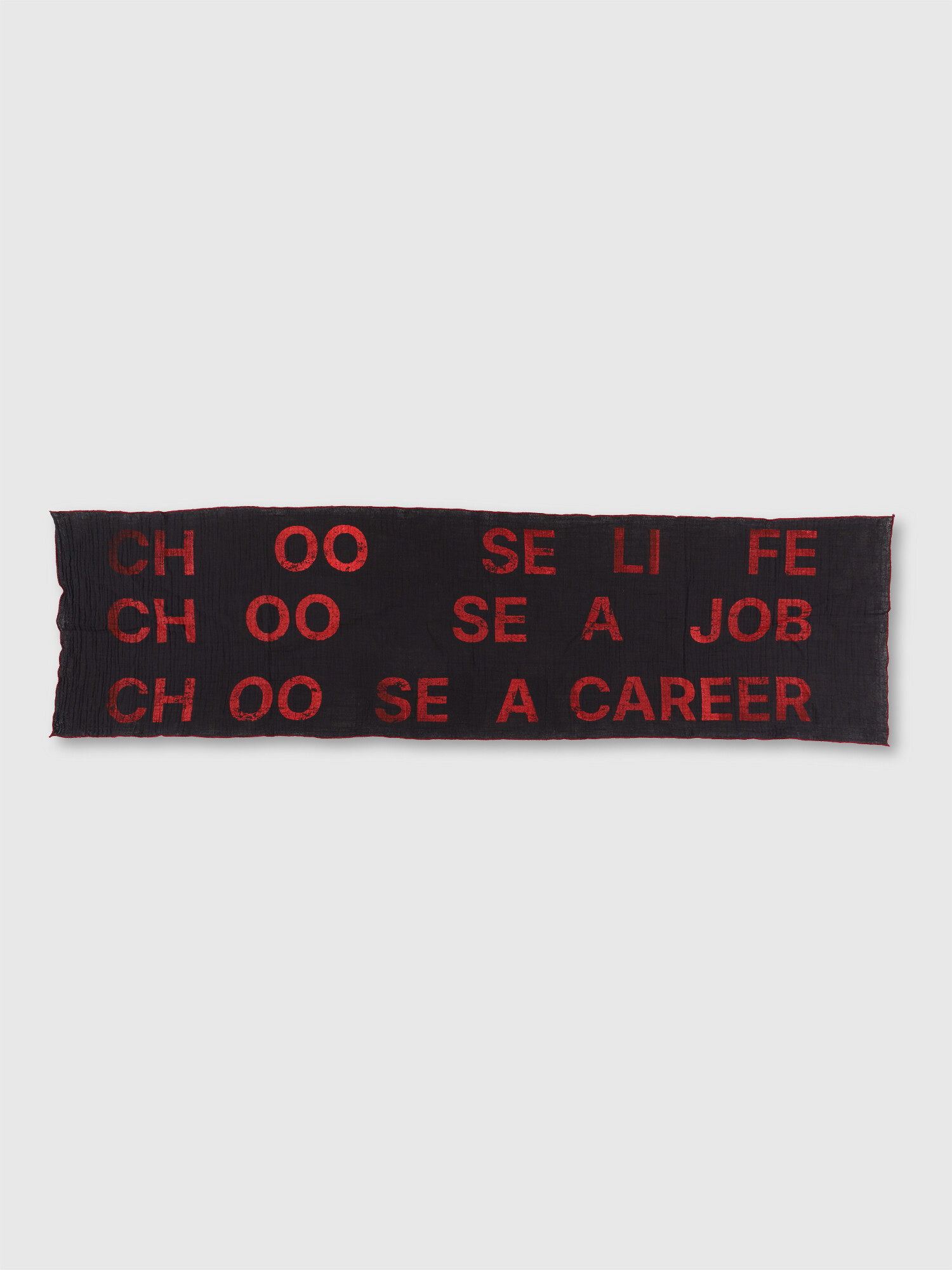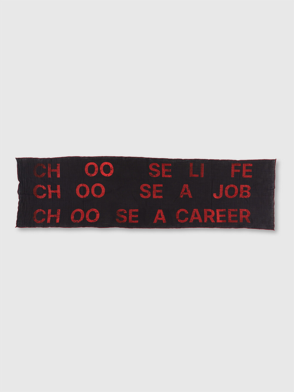 - 2026SS 컨셉 영화 'Trainspotting' 의 "Choose Life" 문구를 실크스크린으로 프린팅한 스카프 입니다.