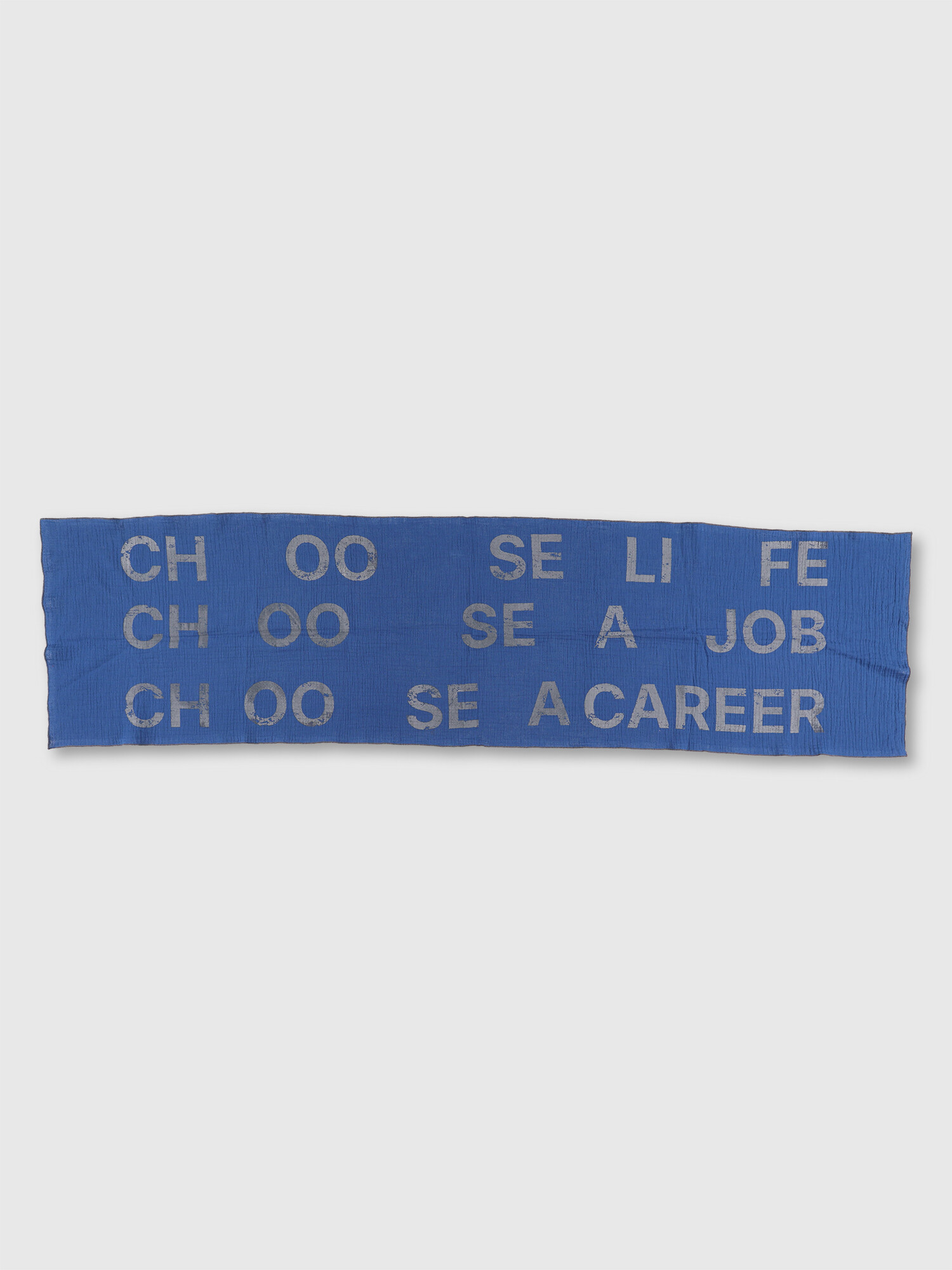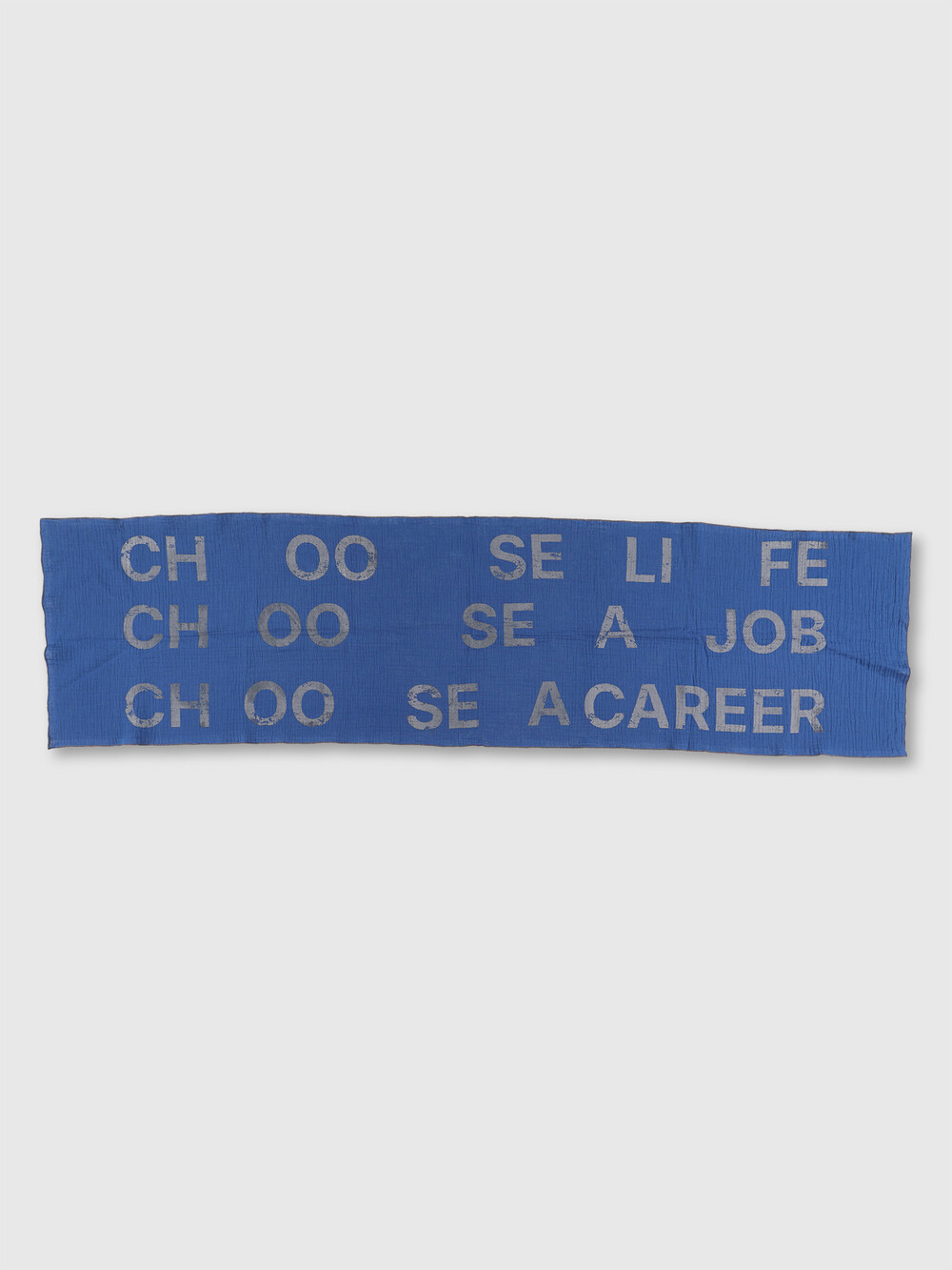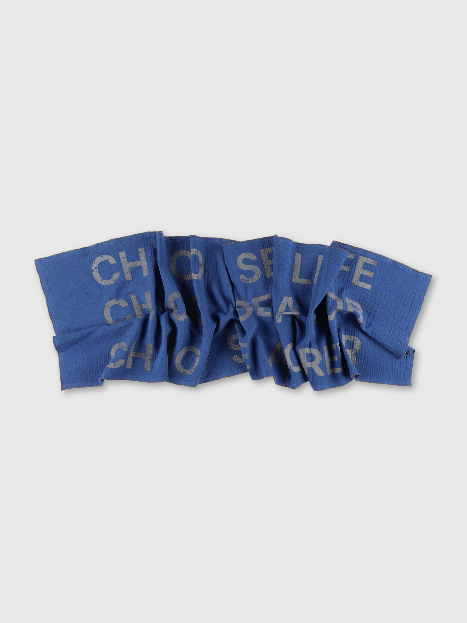- 2026SS 컨셉 영화 'Trainspotting' 의 "Choose Life" 문구를 실크스크린으로 프린팅한 스카프 입니다.