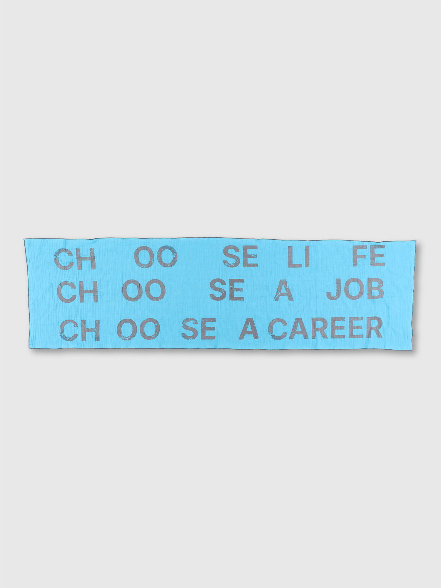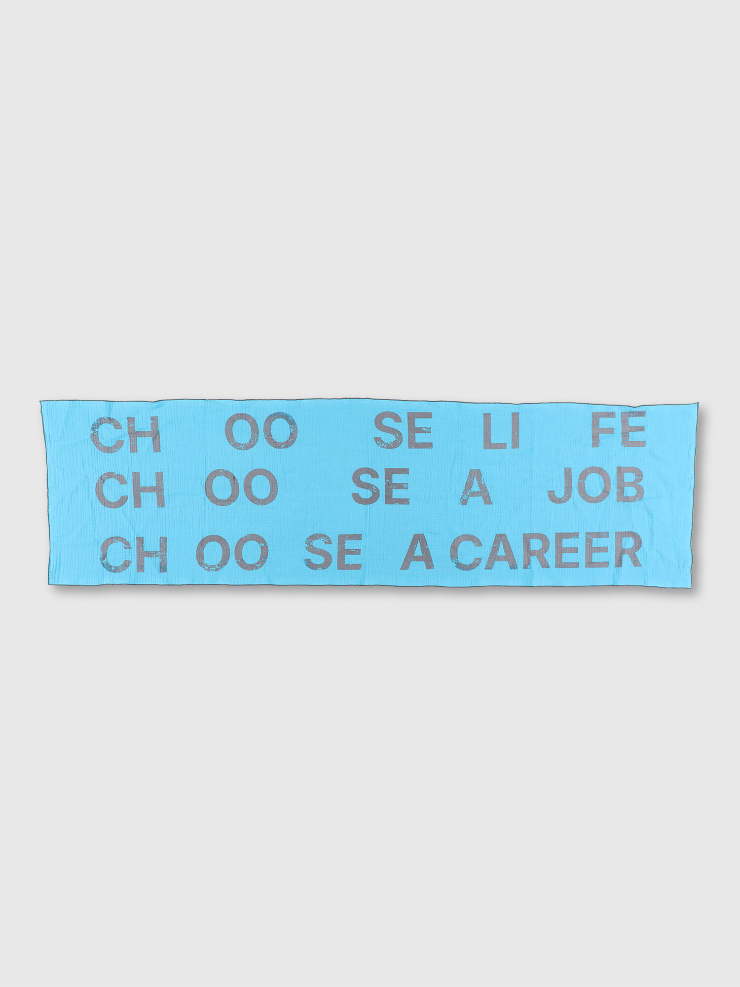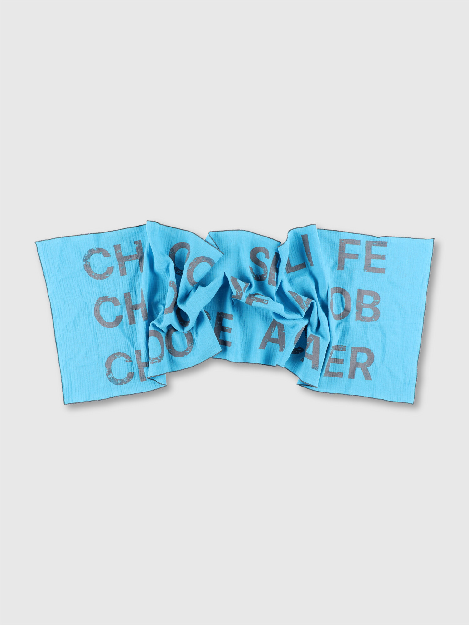 - 2026SS 컨셉 영화 'Trainspotting' 의 "Choose Life" 문구를 실크스크린으로 프린팅한 스카프 입니다.