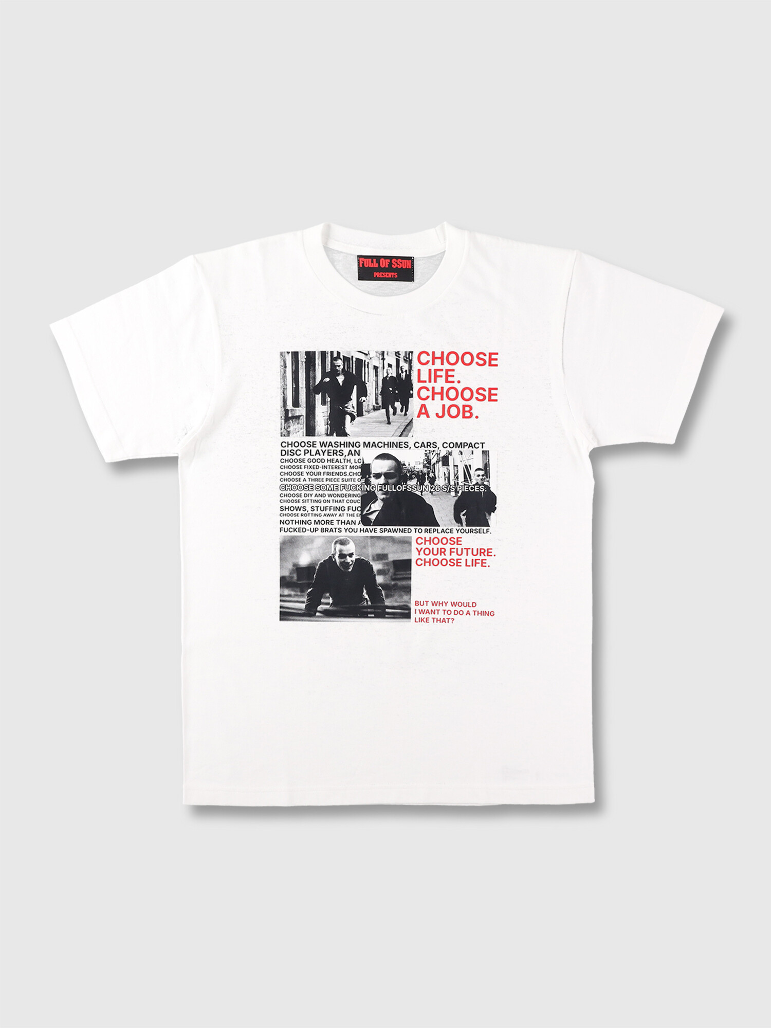 - 2026SS 컨셉 영화 'Trainspotting' 의 "Choose Life" 문구를 모티프로 디자인한 티셔츠입니다.