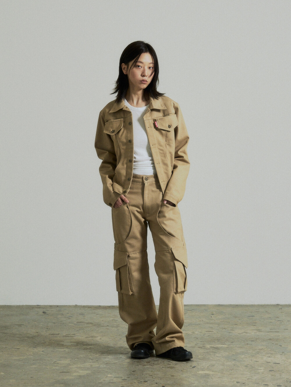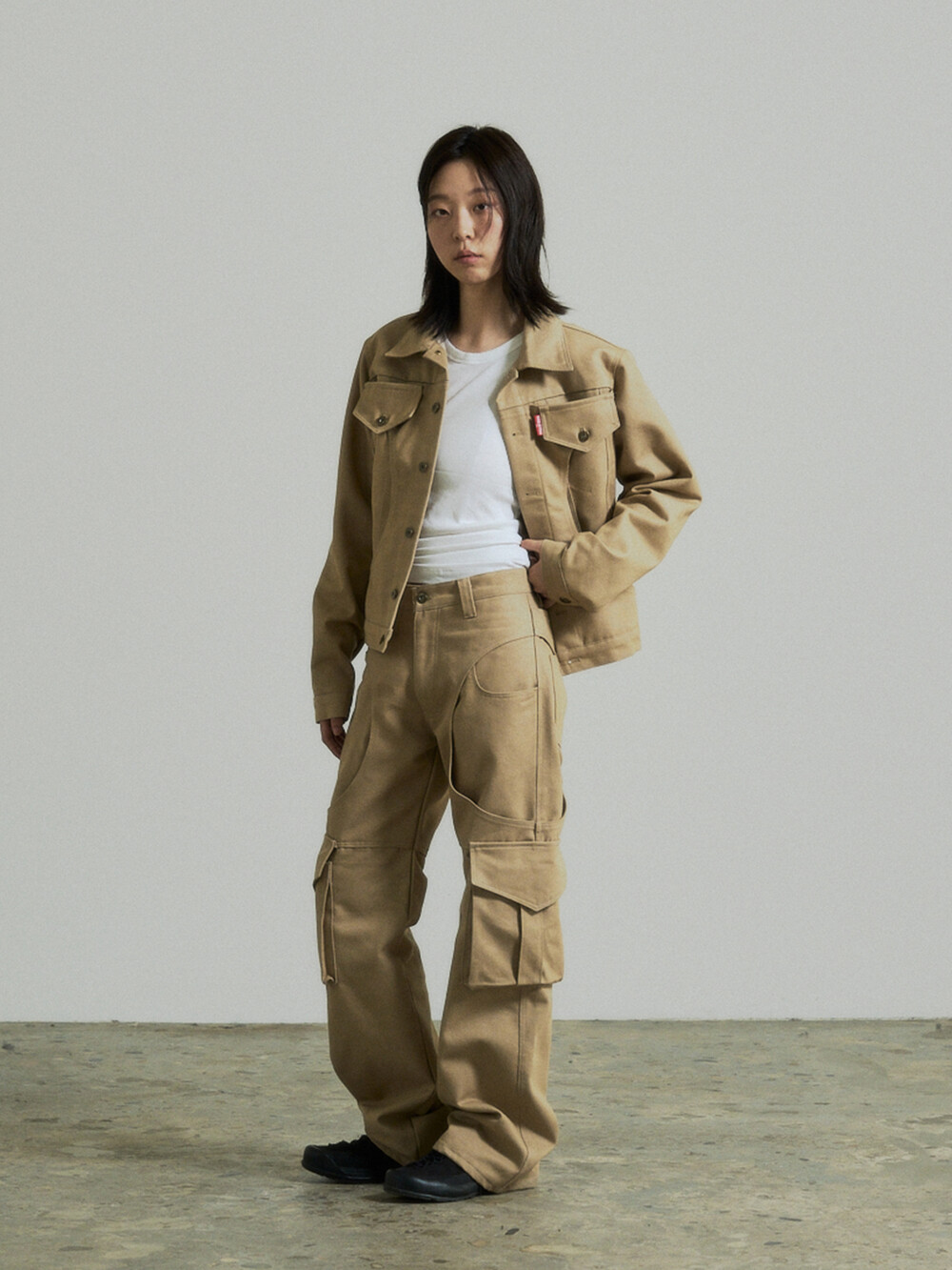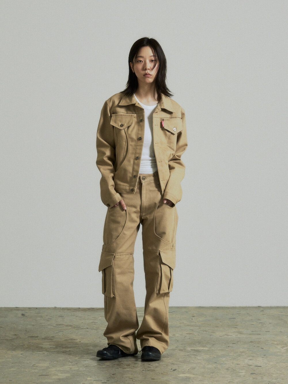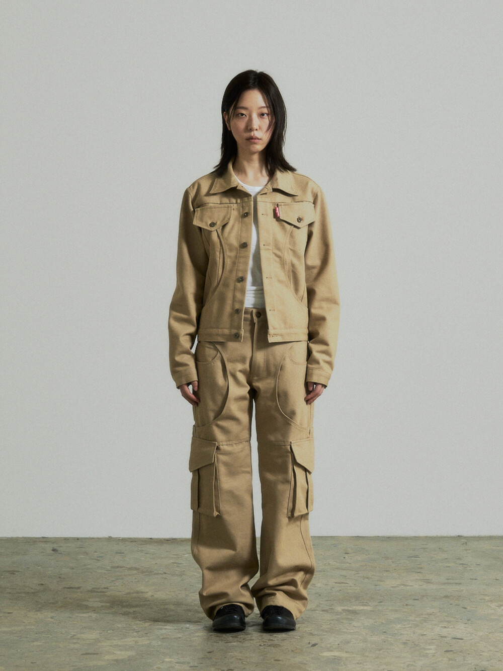 Circle Cargo Denim Pants (Beige)