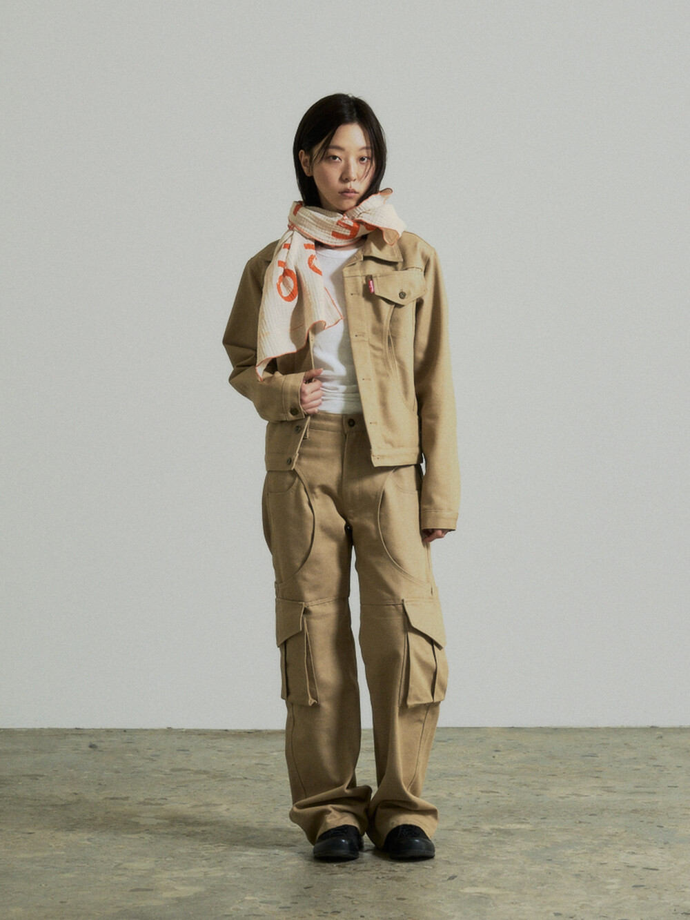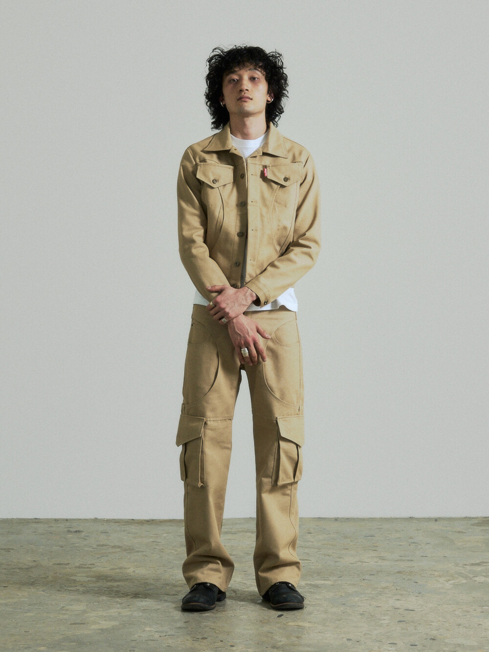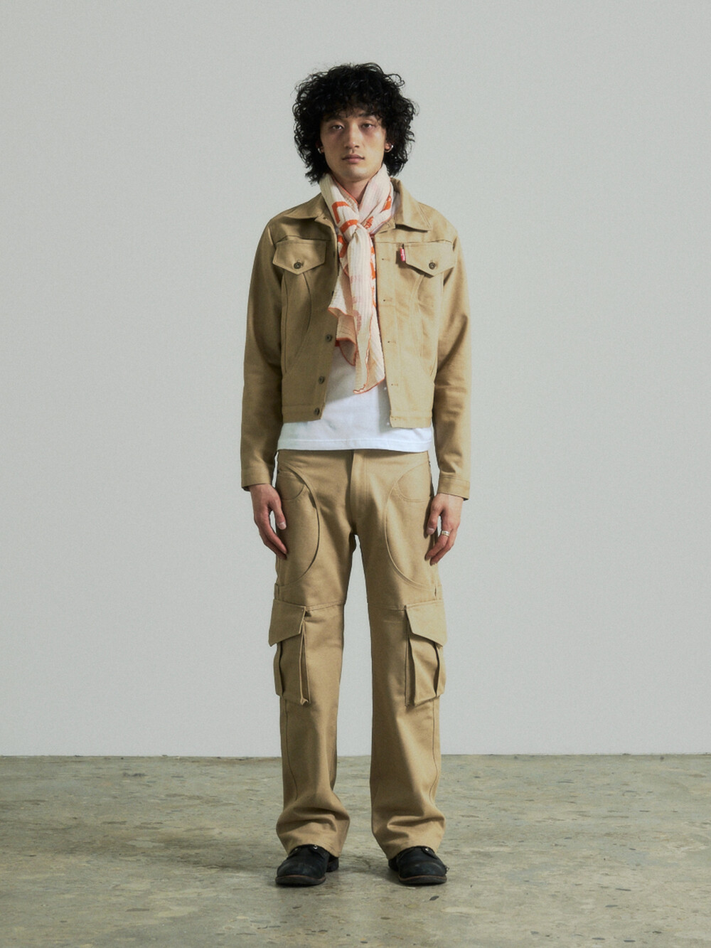 Circle Cargo Denim Pants (Beige)