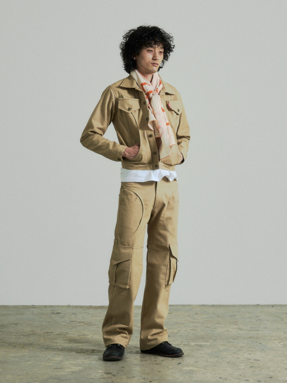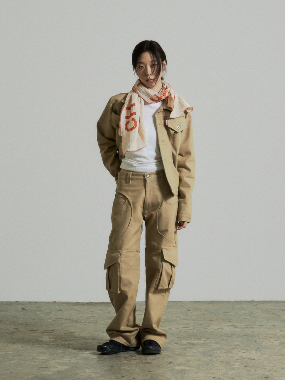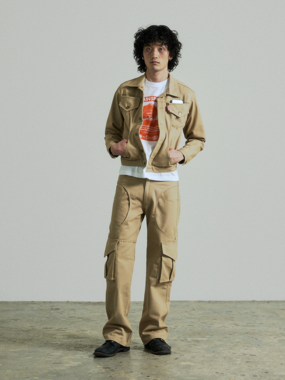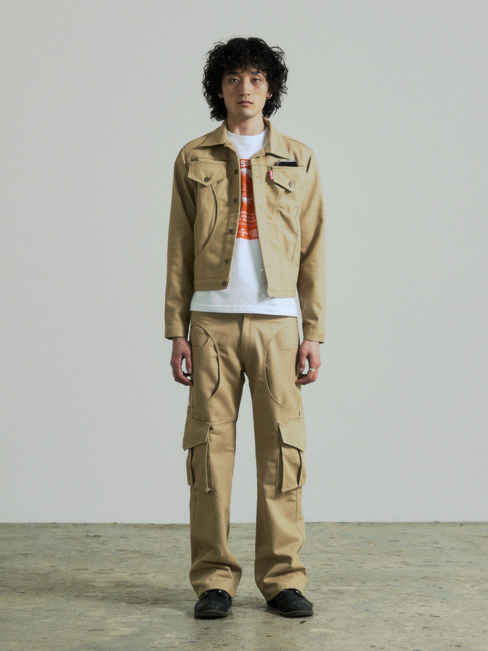 Circle Cargo Denim Pants (Beige)
