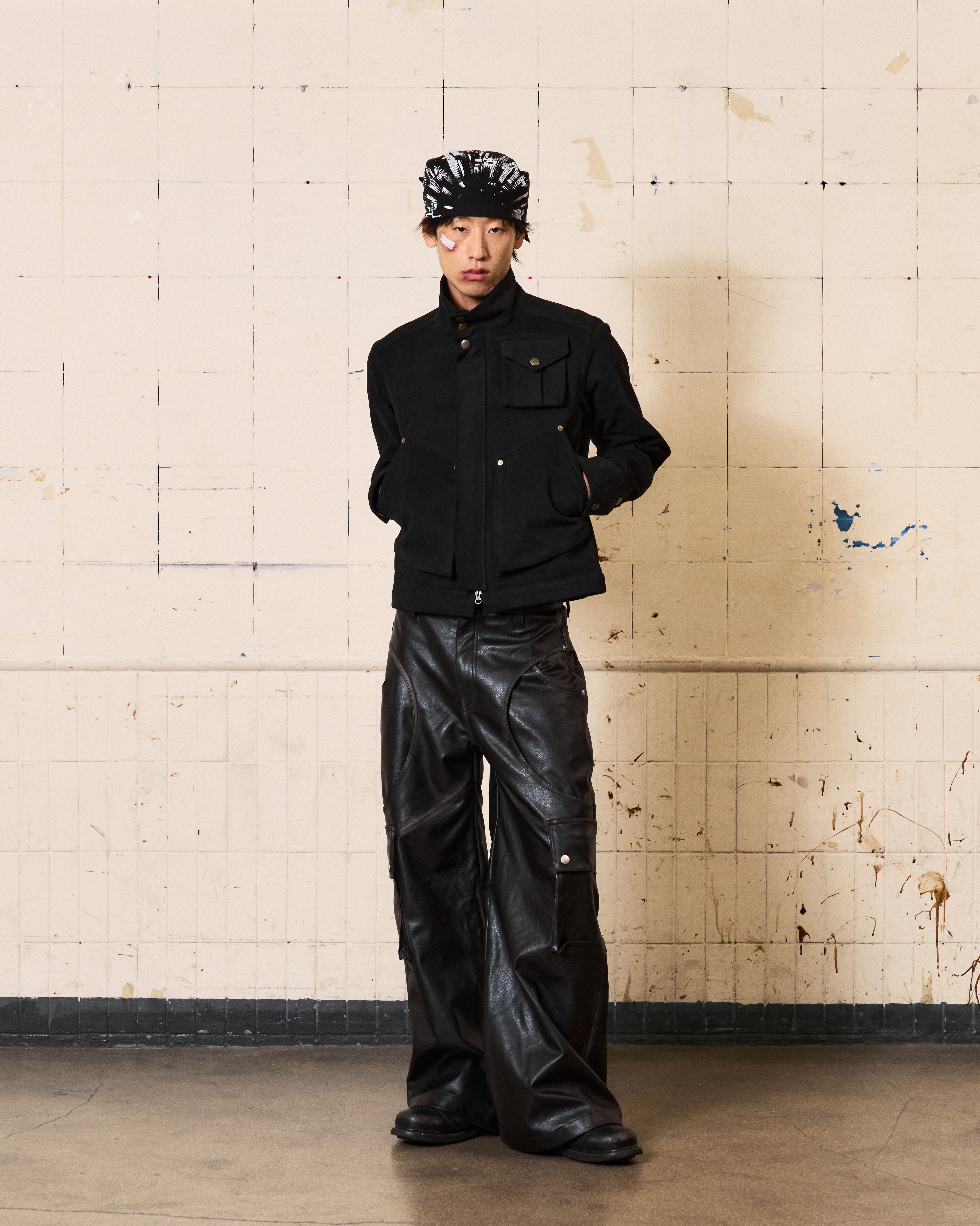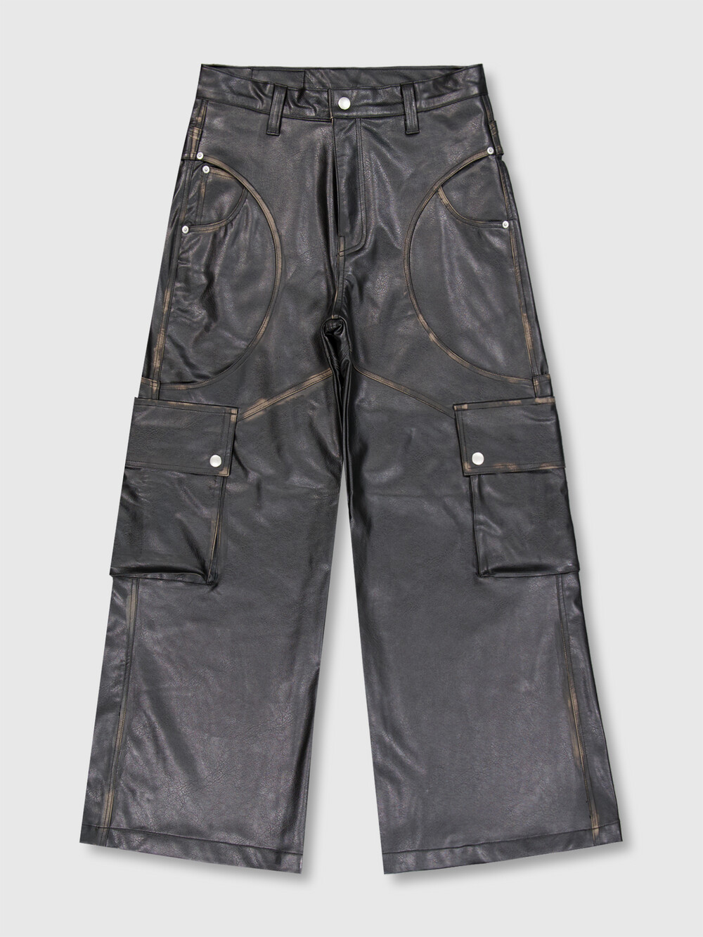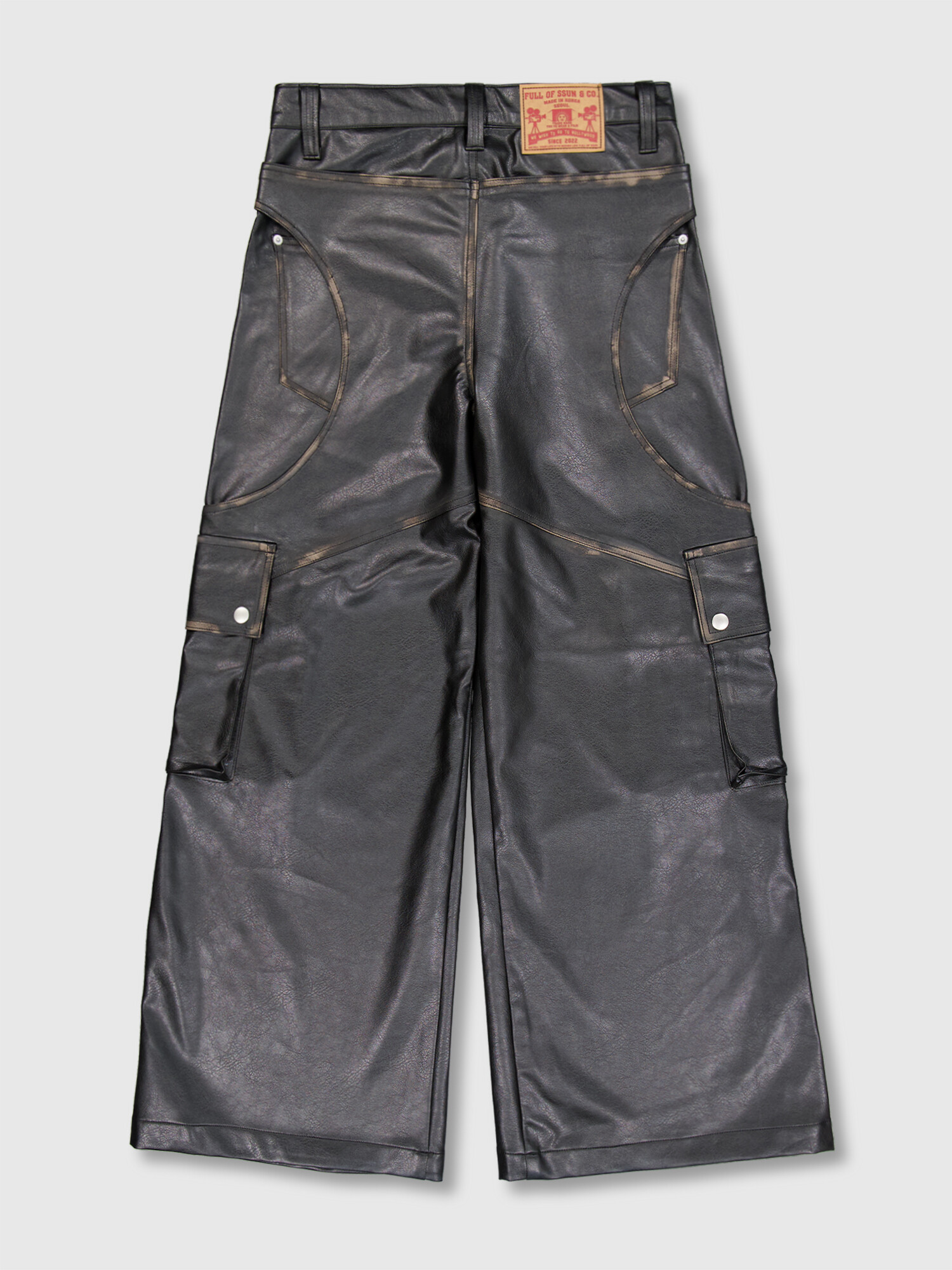 - FULLOFSSUN의 시그니처 디테일인 써클디테일의 Faux Leather 카고팬츠입니다.