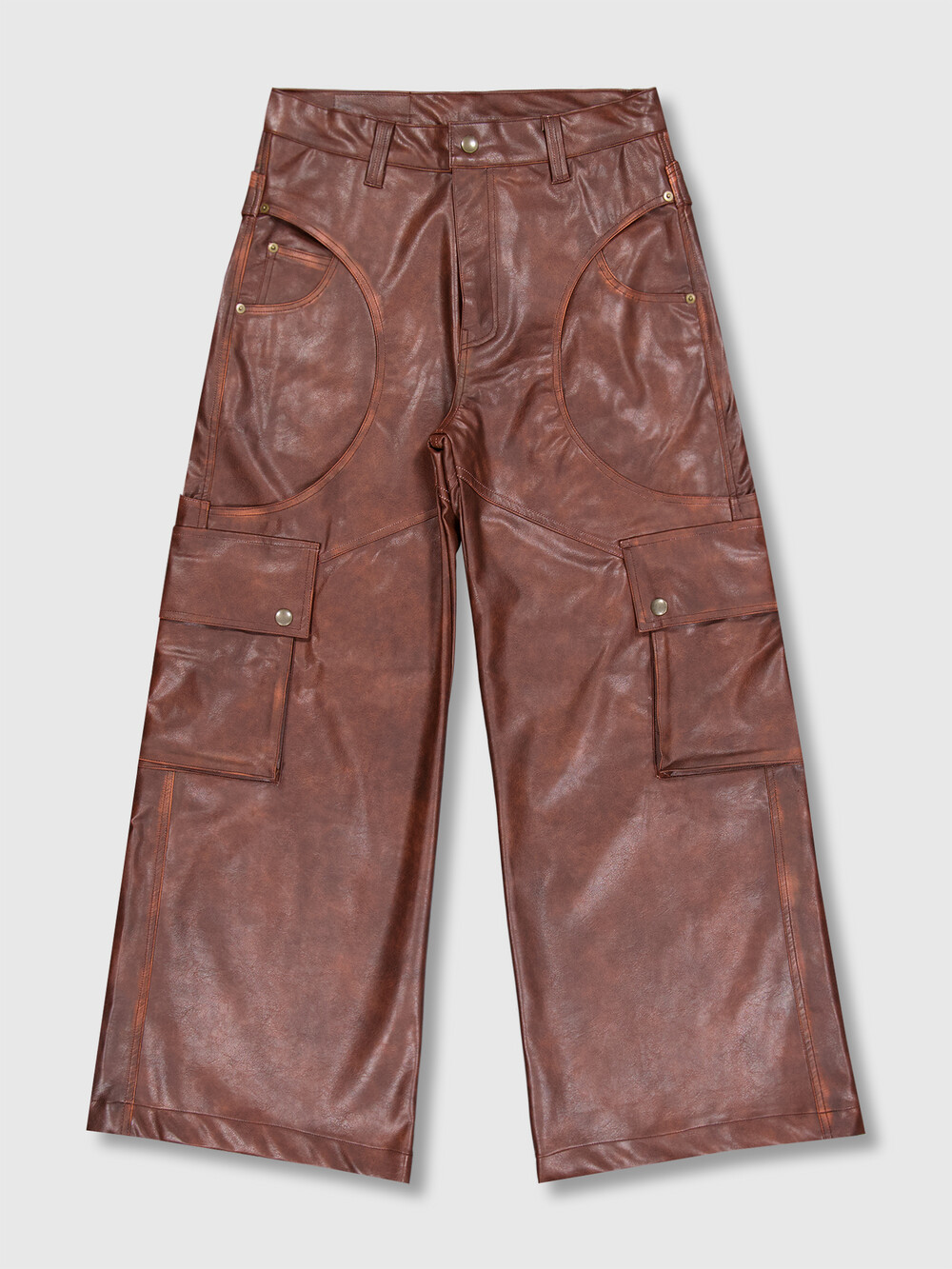 Circle Cargo Washing Leather Pants (Brown)