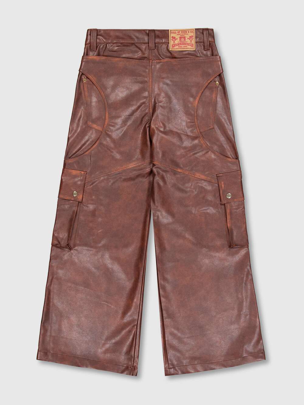 - FULLOFSSUN의 시그니처 디테일인 써클디테일의 Faux Leather 카고팬츠입니다.