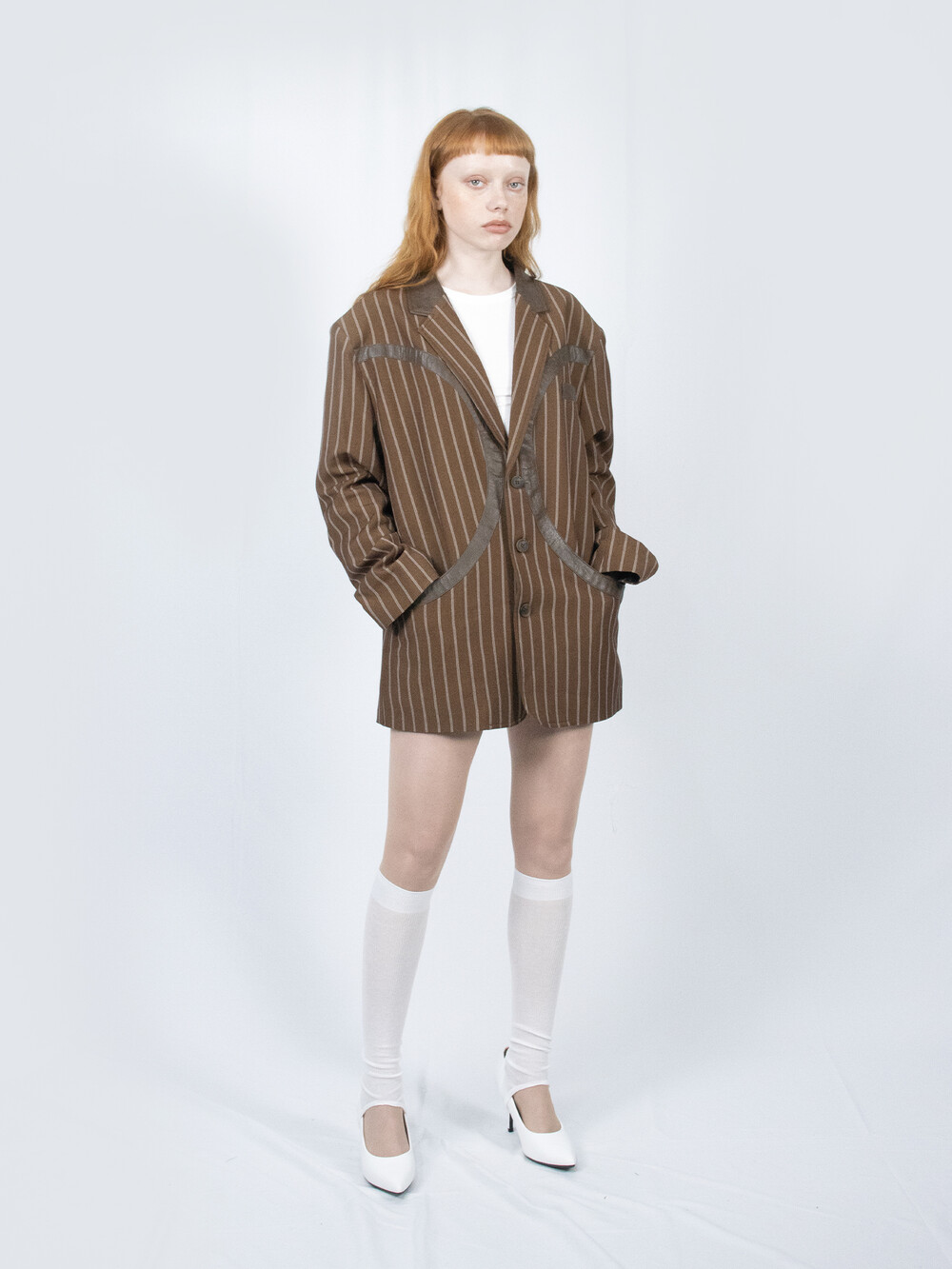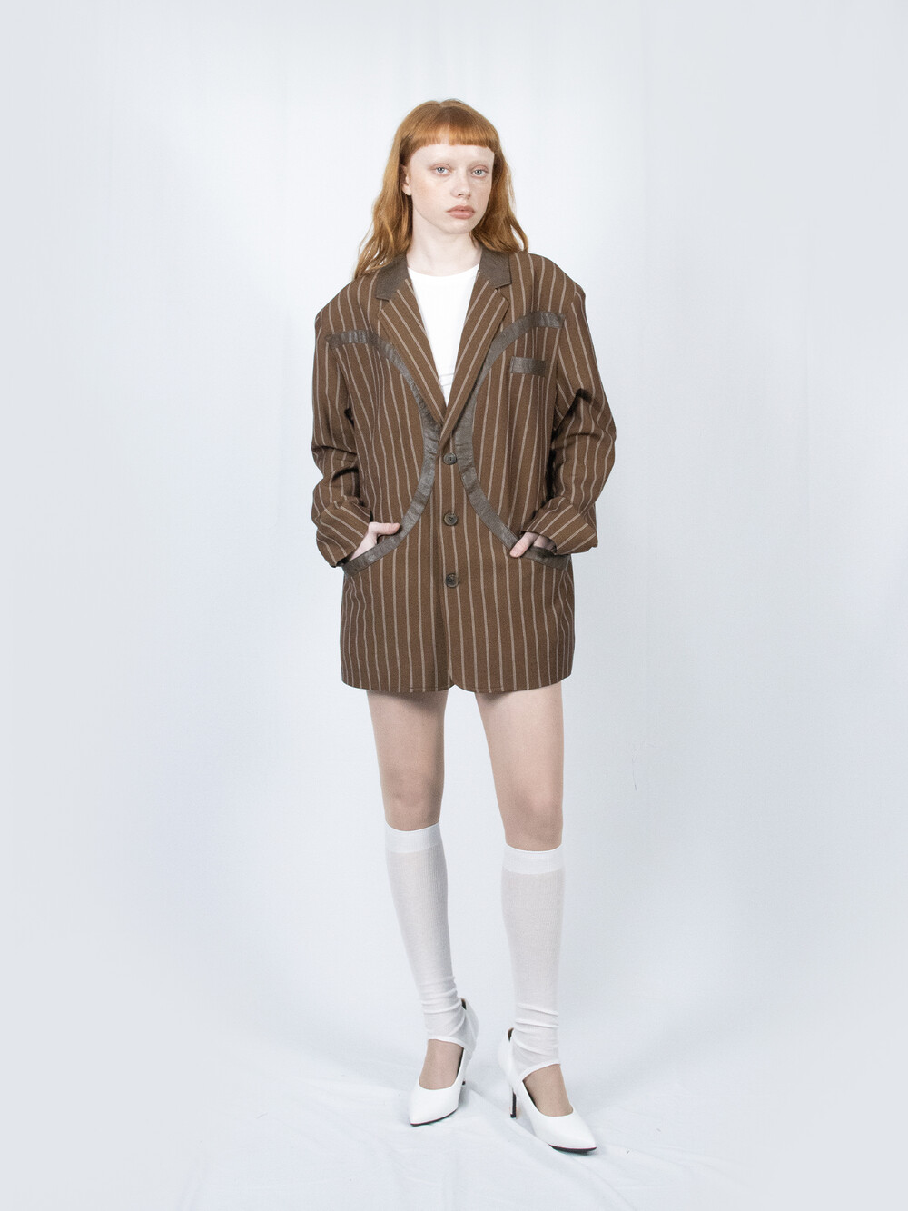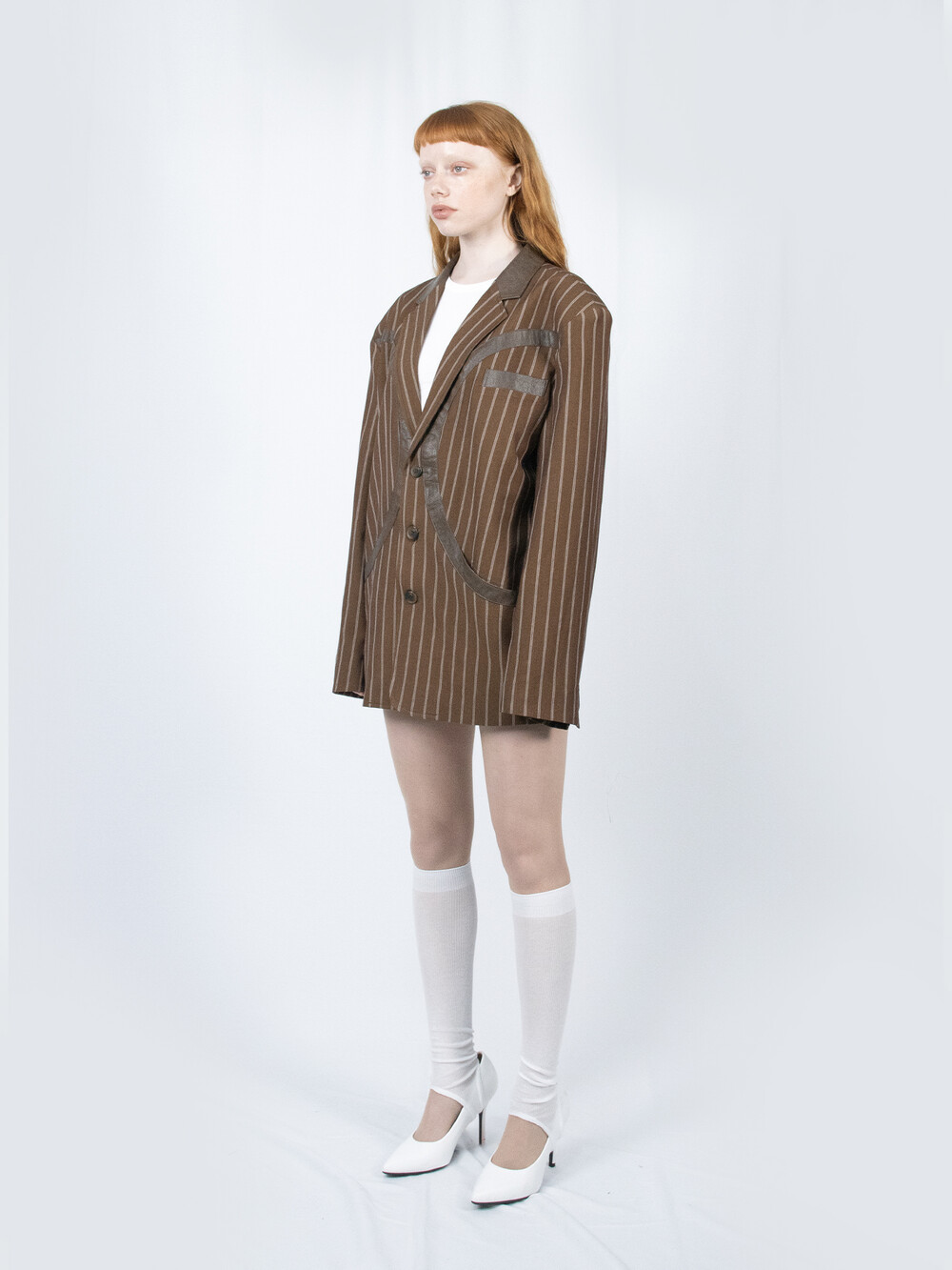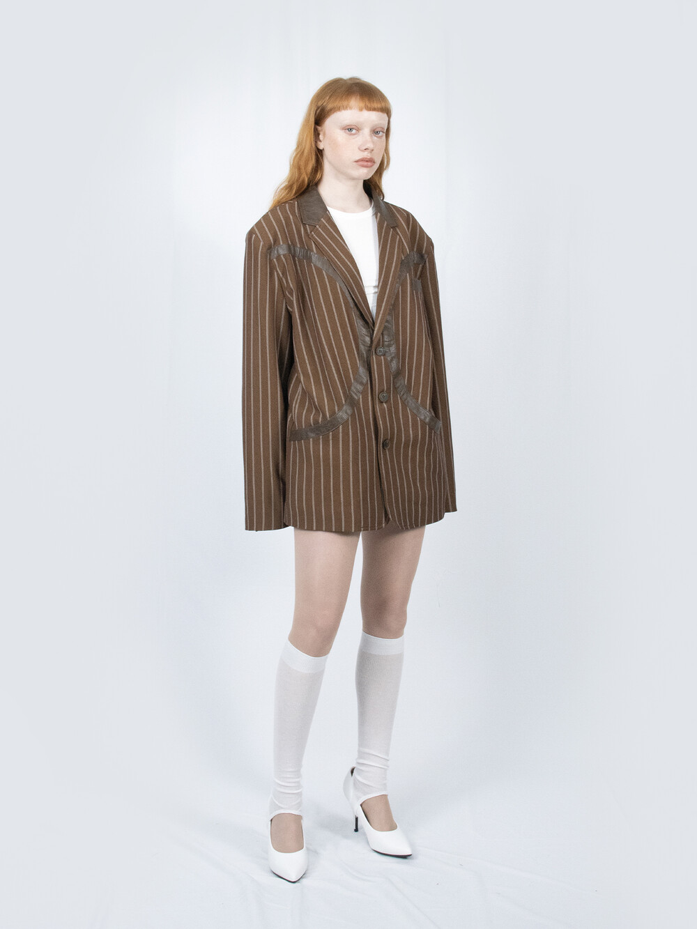 Circle Leather Patch Blazer (Brown Stripe)