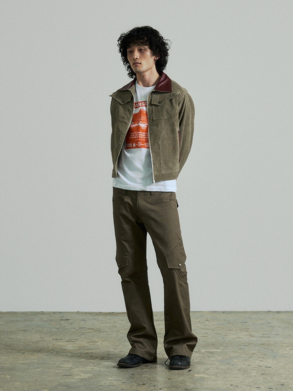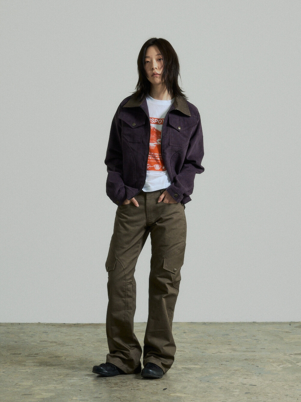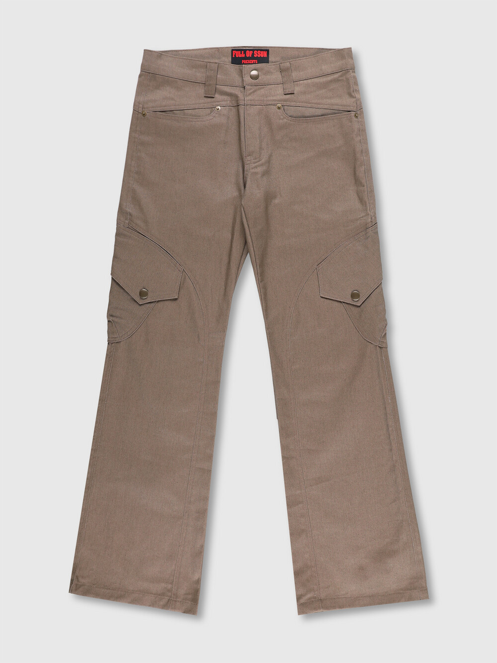 - 곡선디테일의 절개패널의 플레어핏 카고 팬츠입니다.