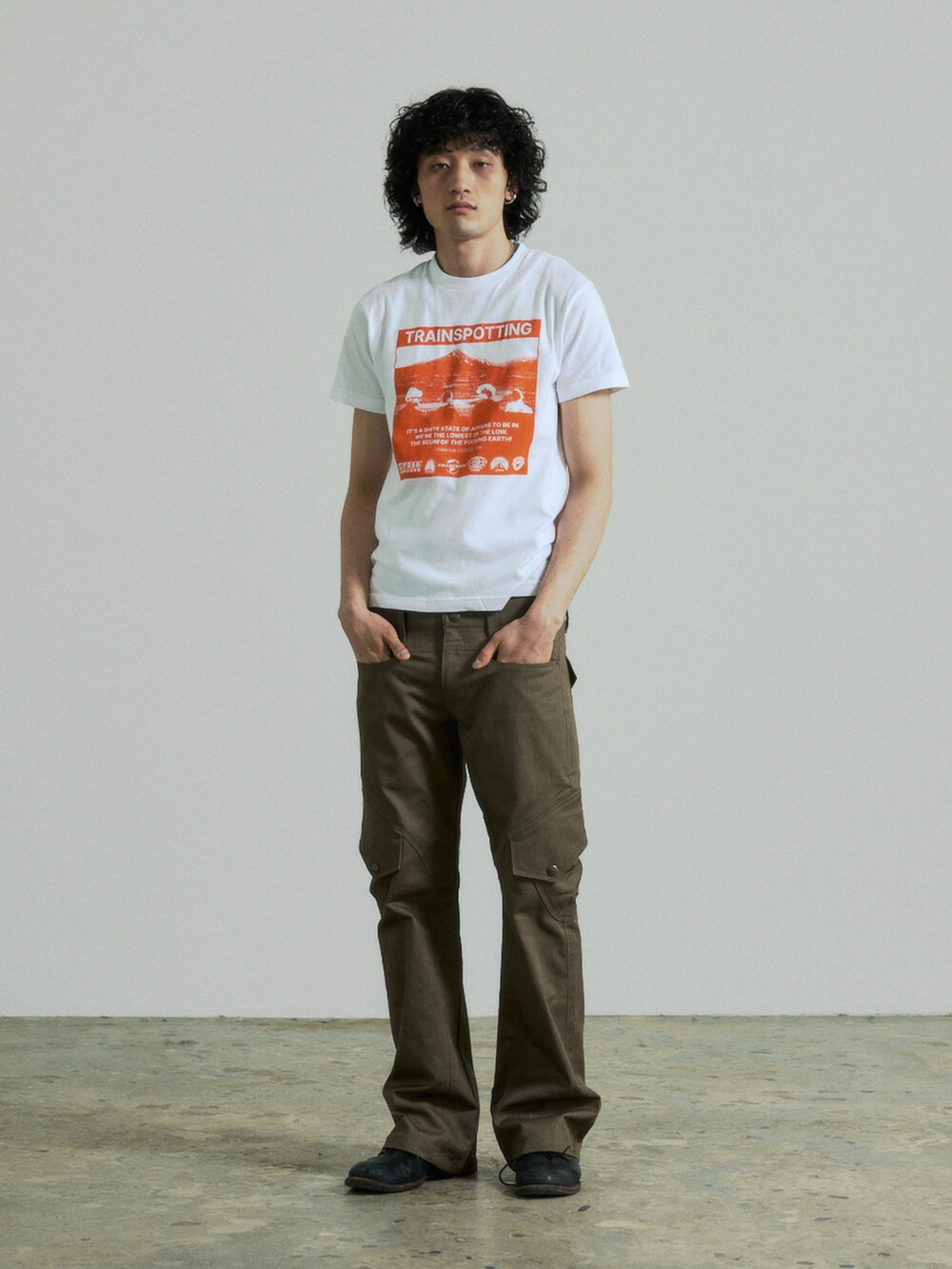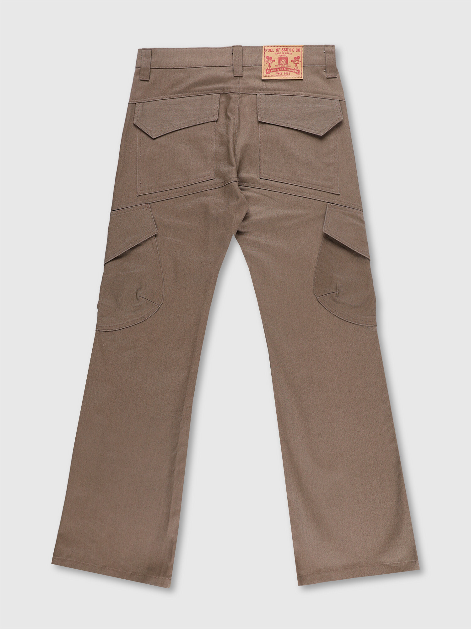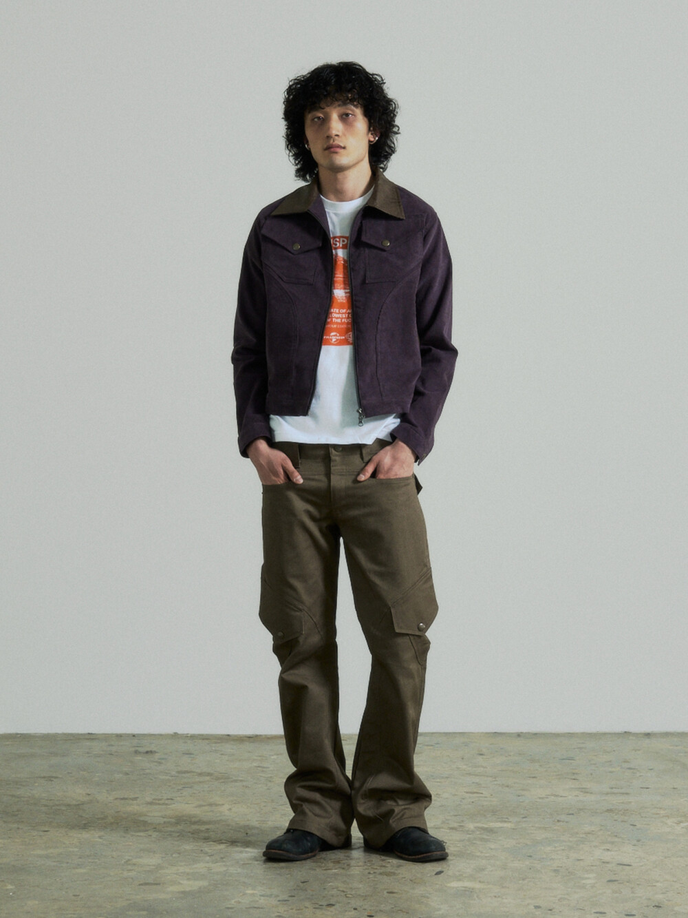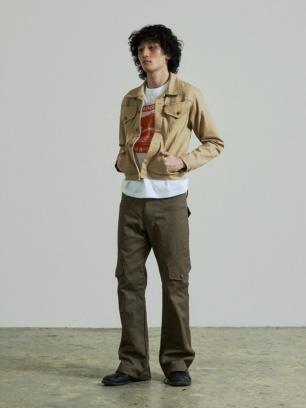 - 곡선디테일의 절개패널의 플레어핏 카고 팬츠입니다.