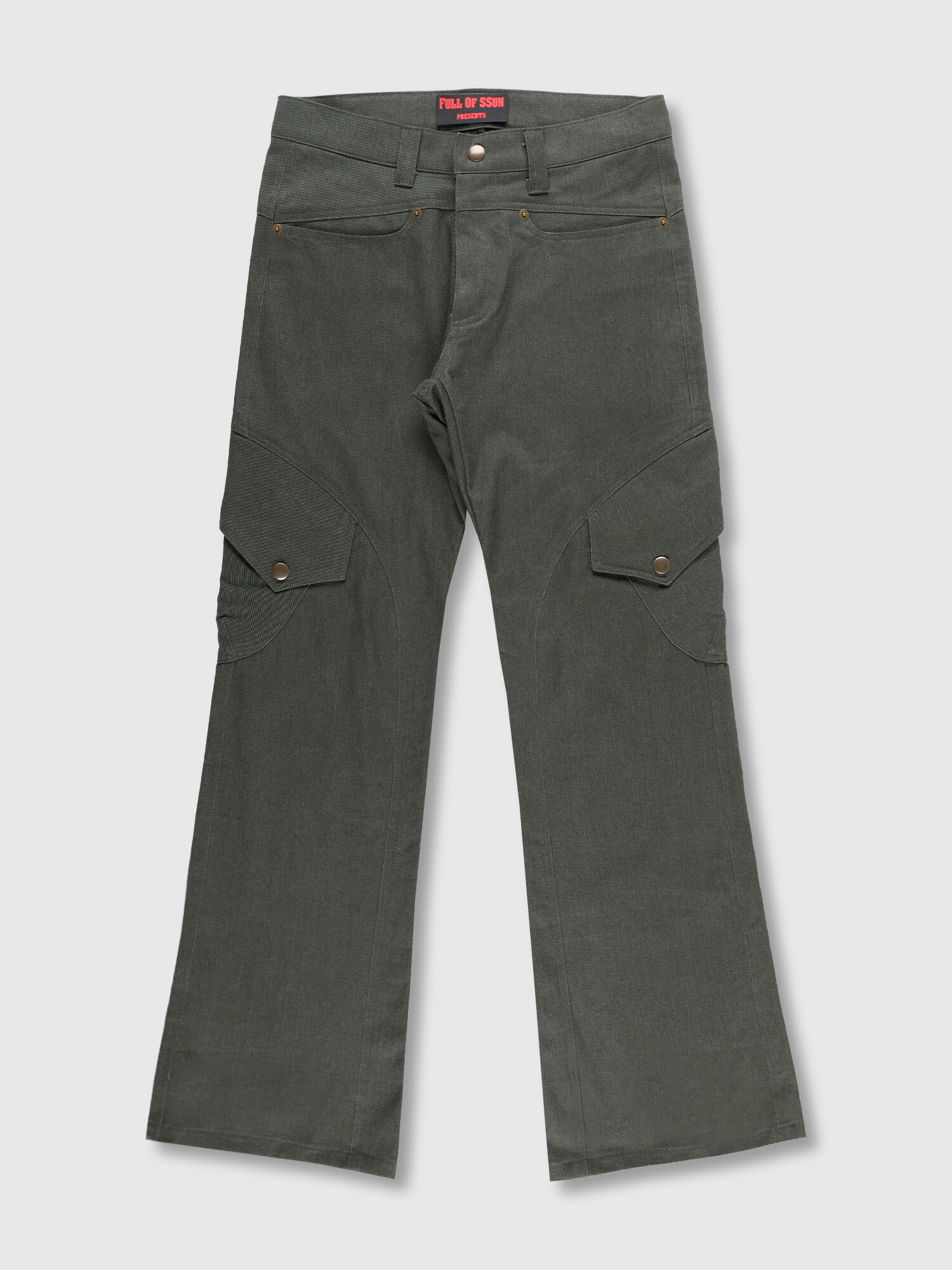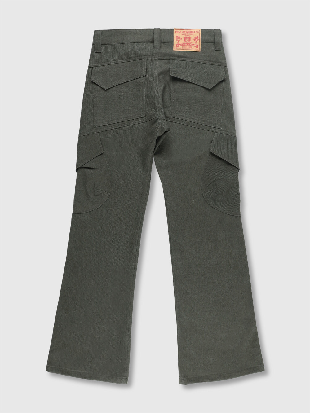 Curve Panel Flare Cargo Pants (Dark Green)