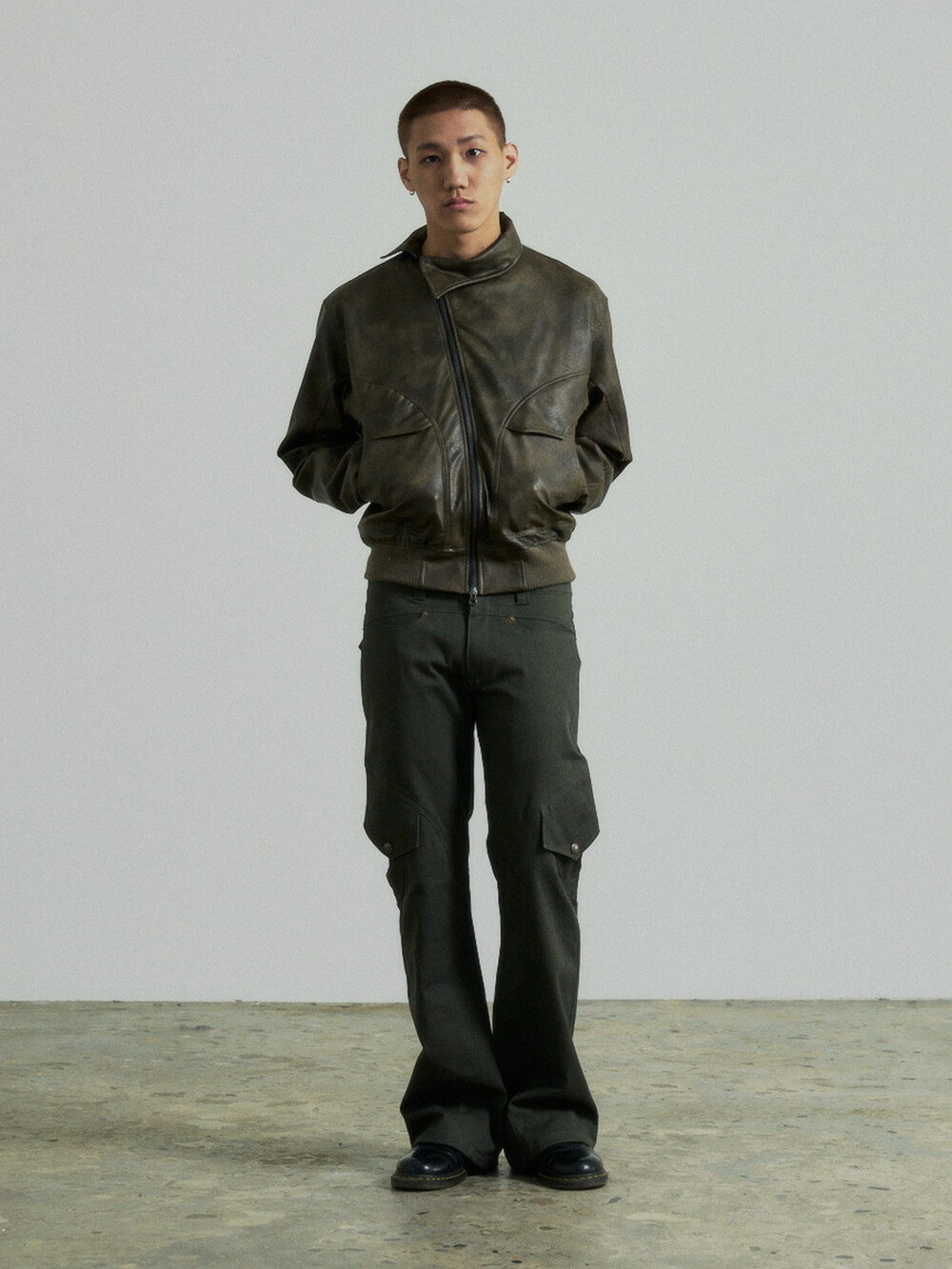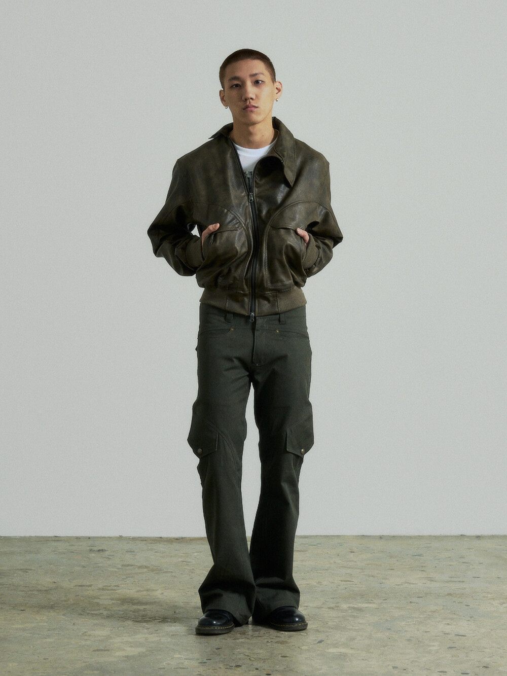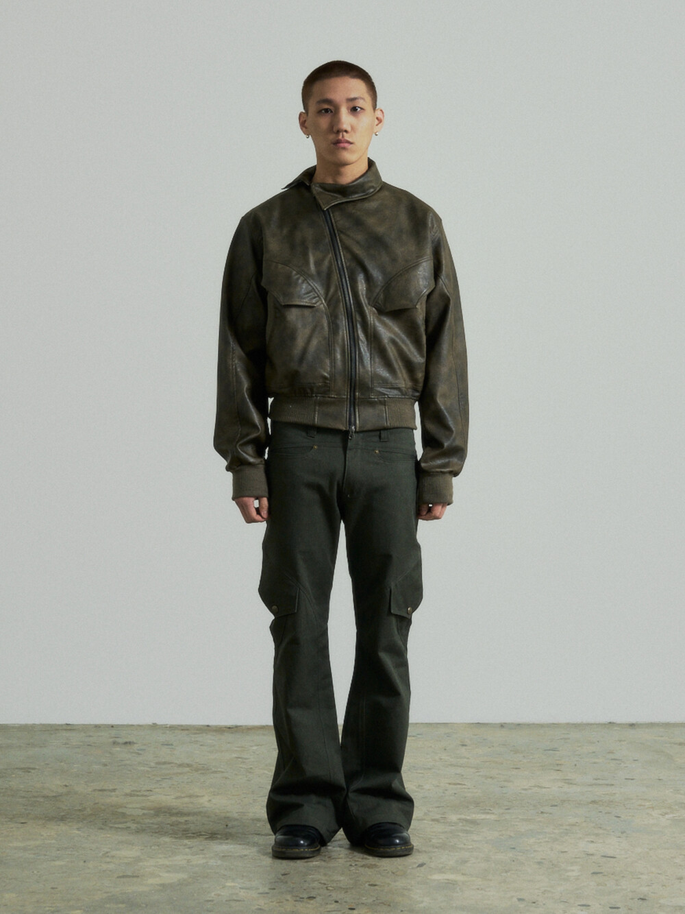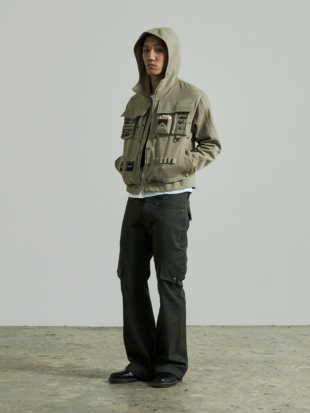 - 곡선디테일의 절개패널의 플레어핏 카고 팬츠입니다.