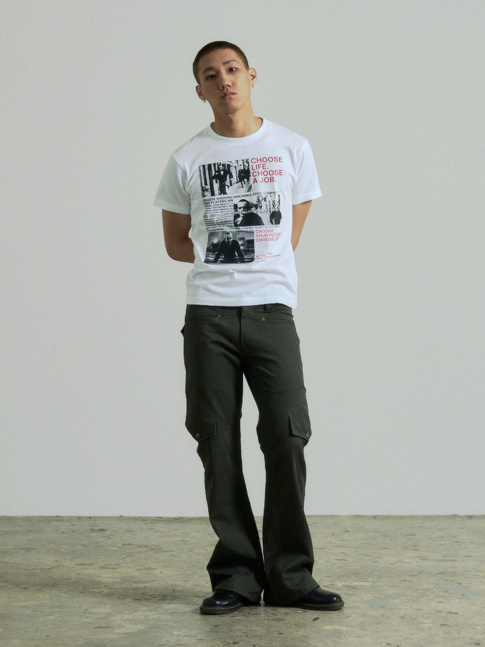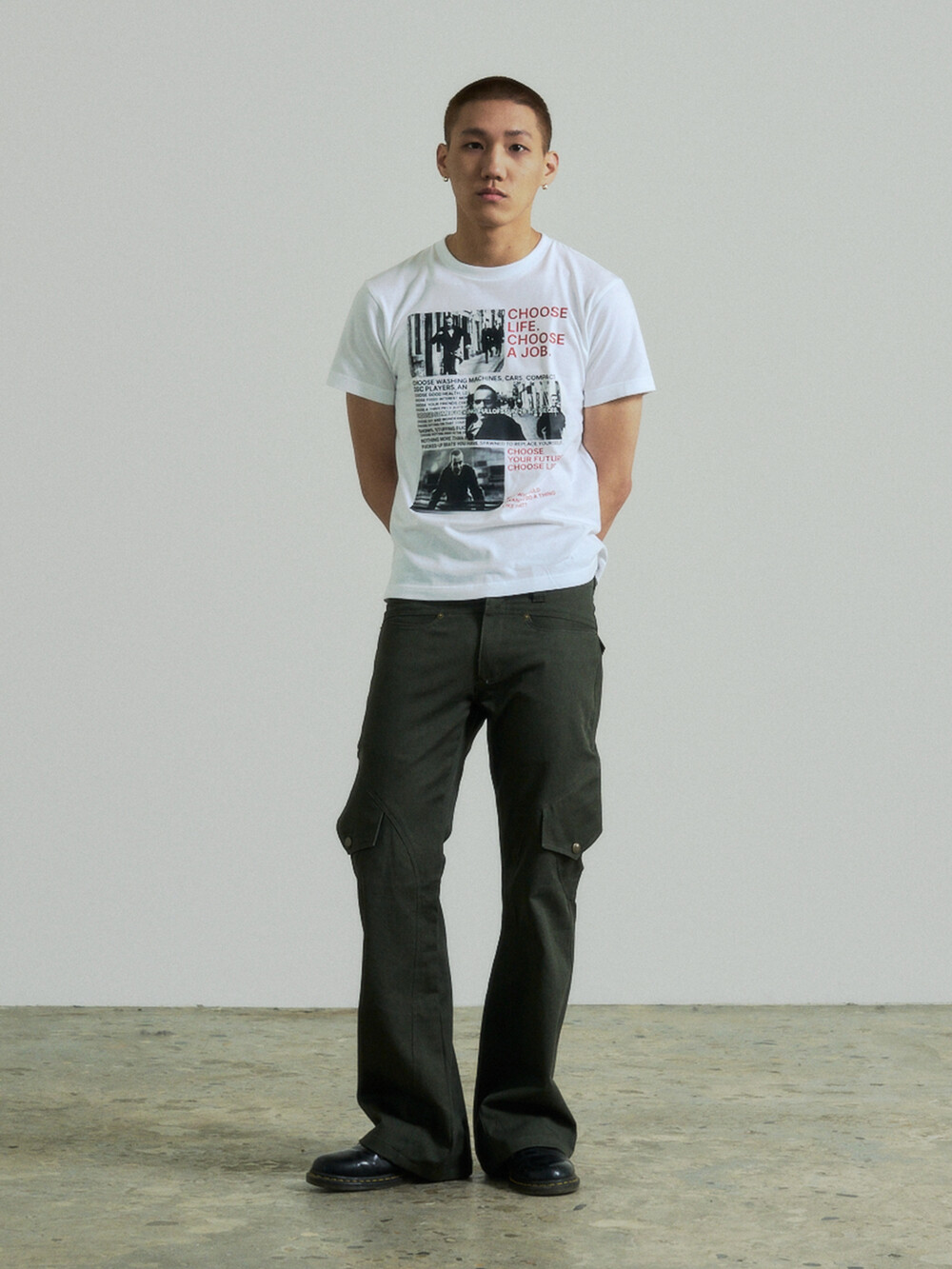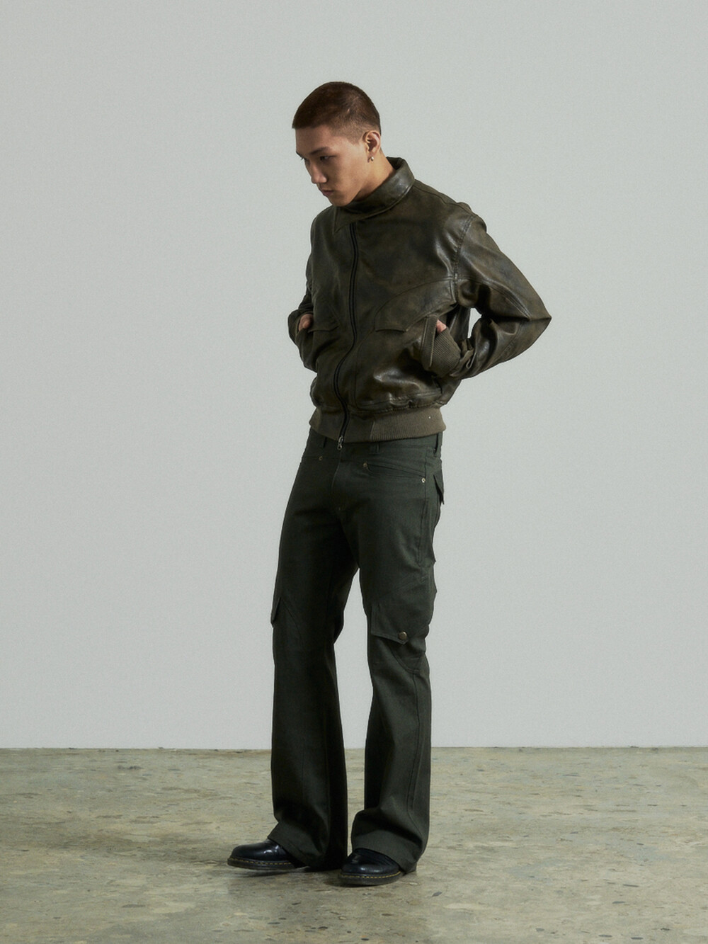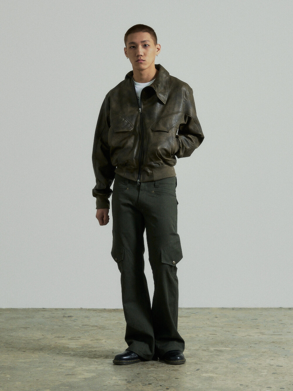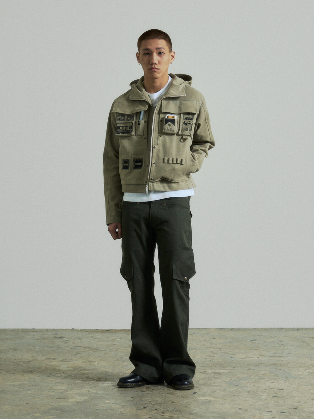 - 곡선디테일의 절개패널의 플레어핏 카고 팬츠입니다.