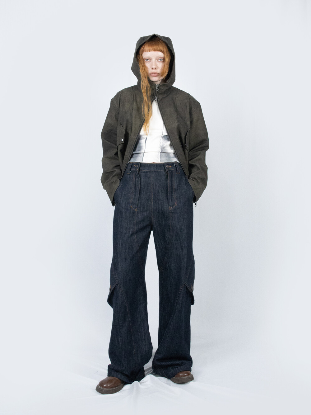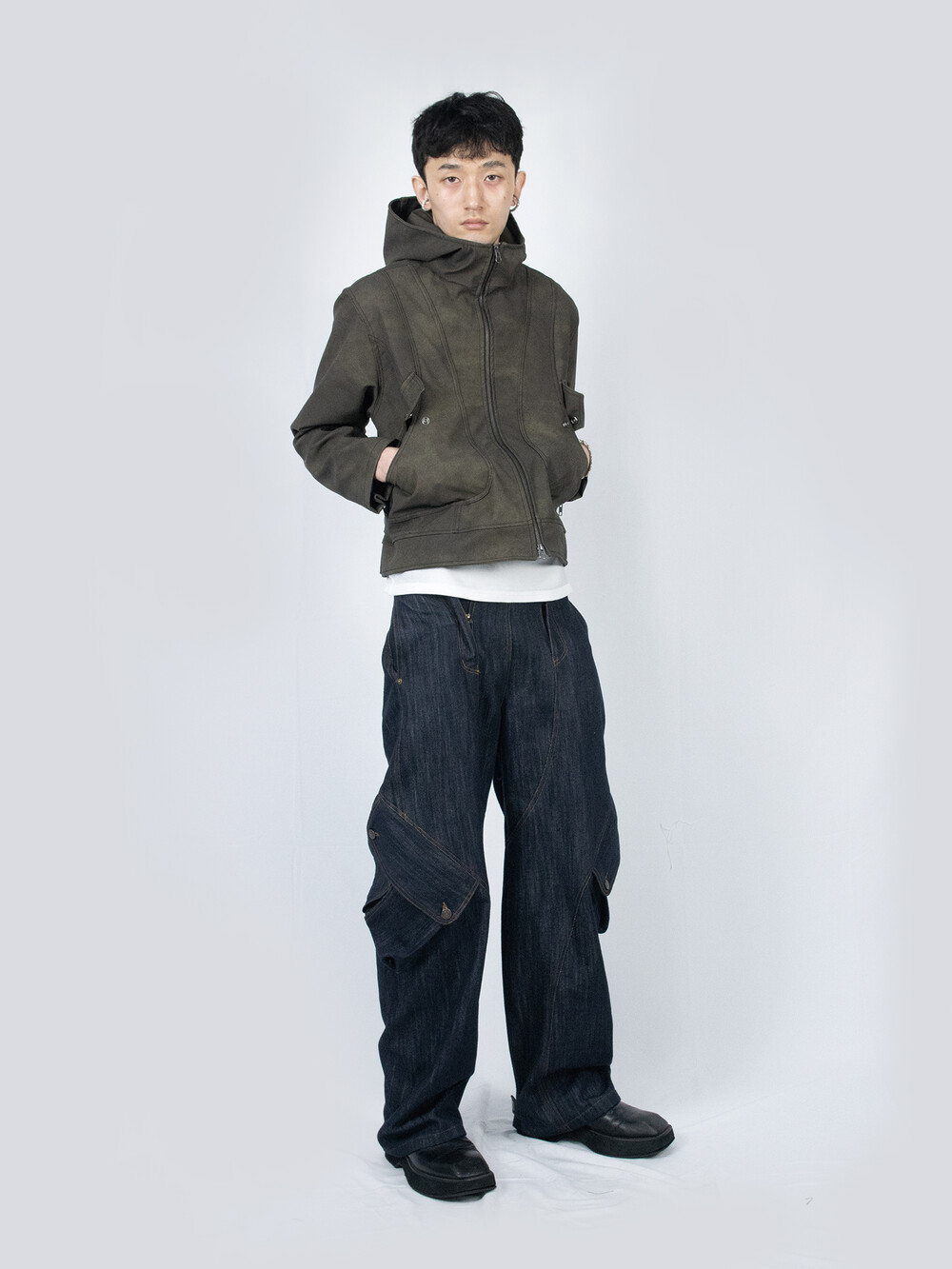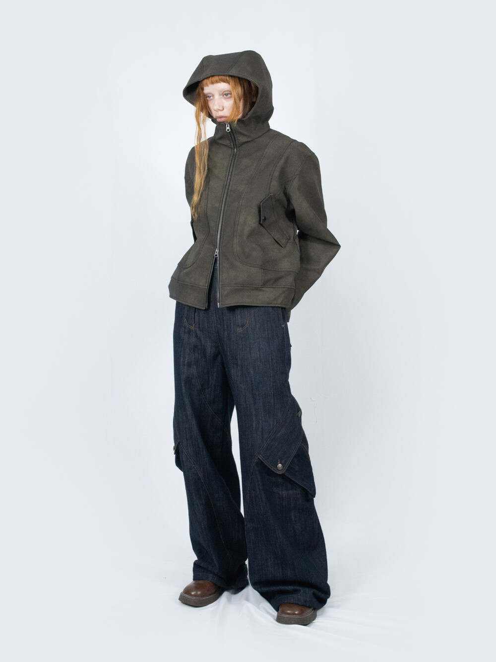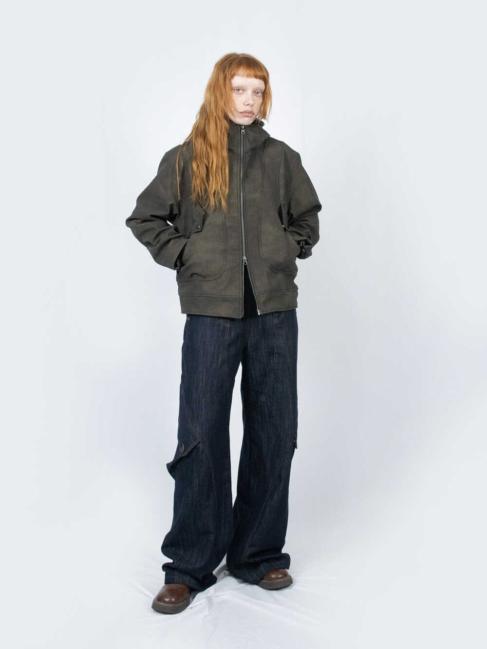 - 커브 디테일의 포켓- 뒤판 비조디테일로 핏 조정 가능
