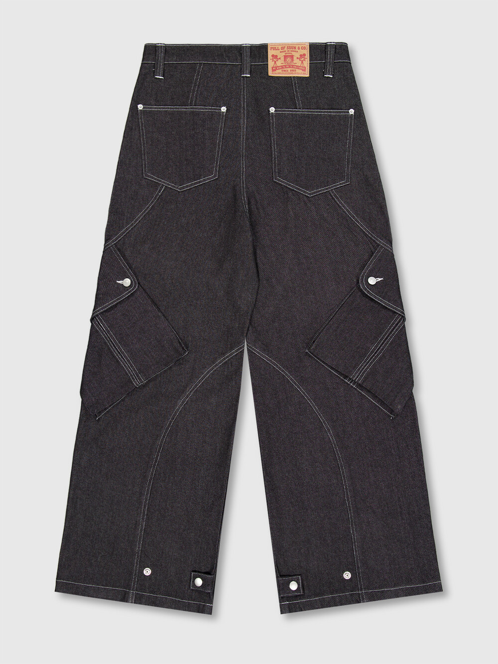 - 버튼플라이(뎅고)를 양쪽에 더블로 배치한 디테일의 와이드핏 카고데님입니다.