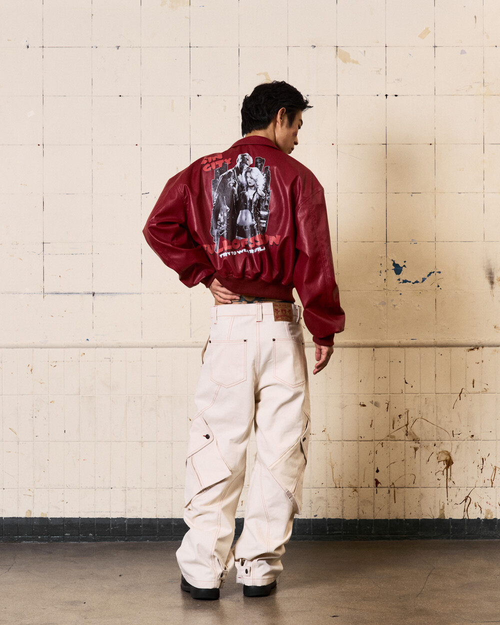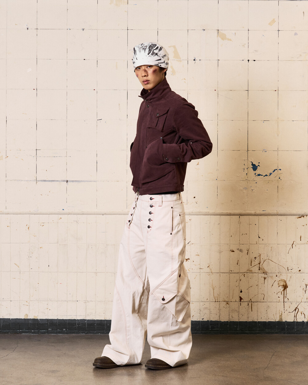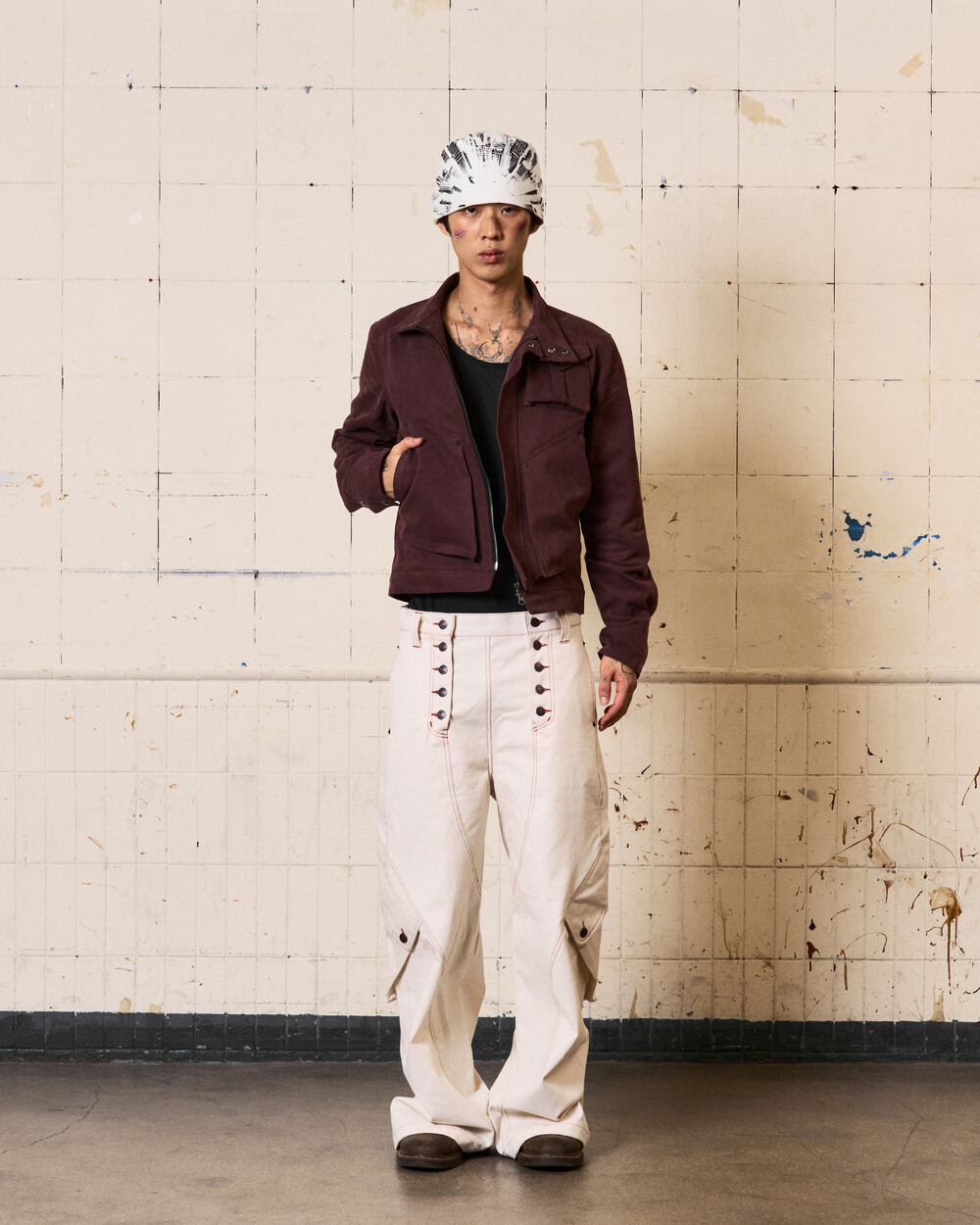 - 버튼플라이(뎅고)를 양쪽에 더블로 배치한 디테일의 와이드핏 카고데님입니다.