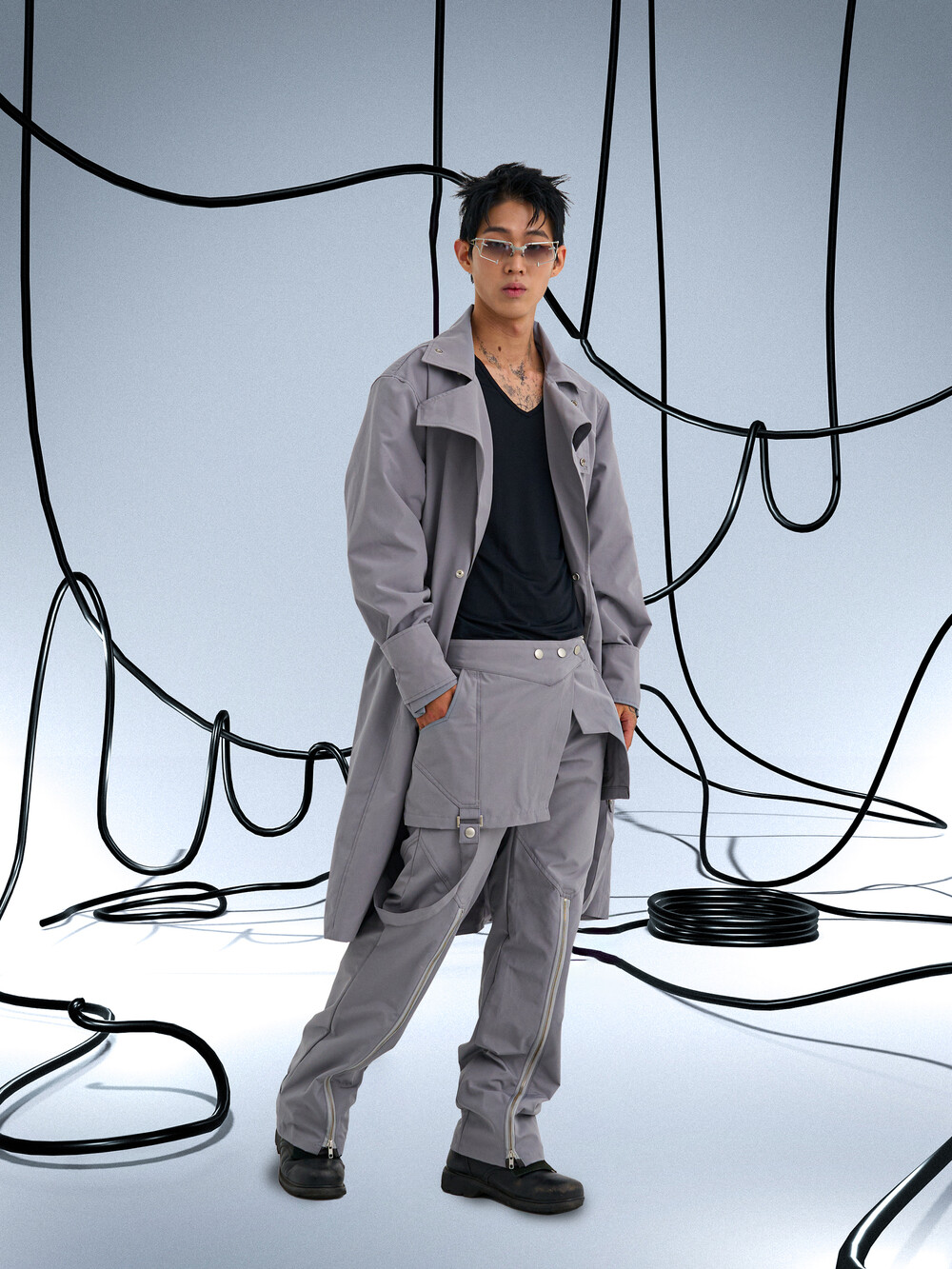 Ghost In The Shell Paneled Trench Coat (Grey)