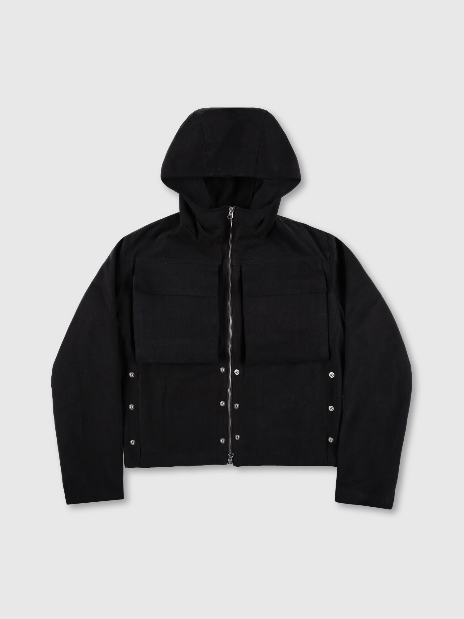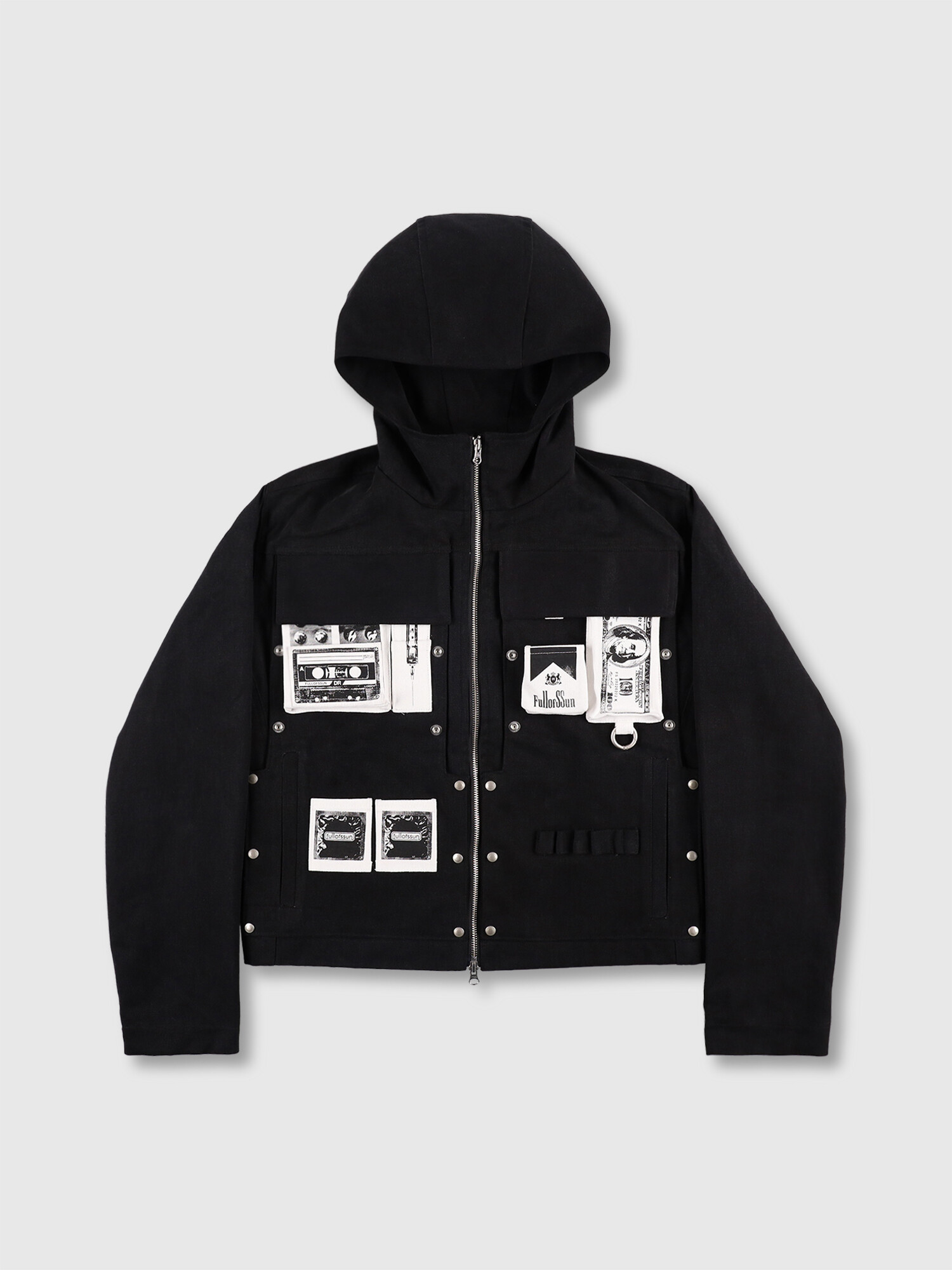 Hidden Fold Printed Multi-pocket Jacket (Black)