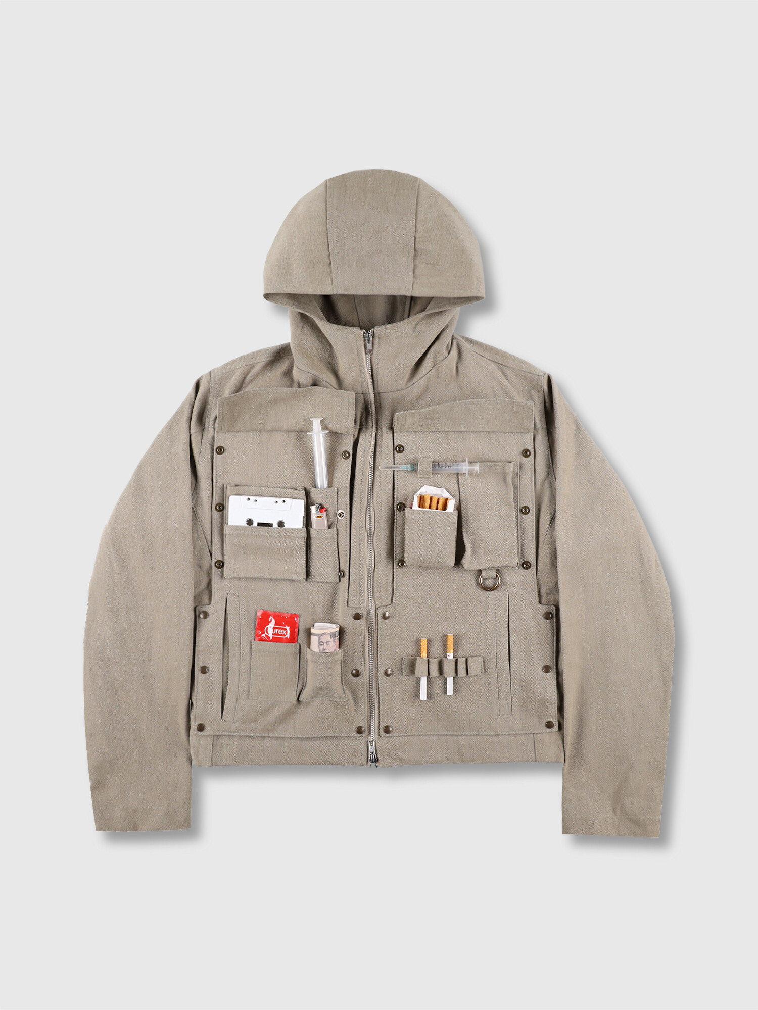 Hidden Fold Multi-pocket Jacket (Khaki)