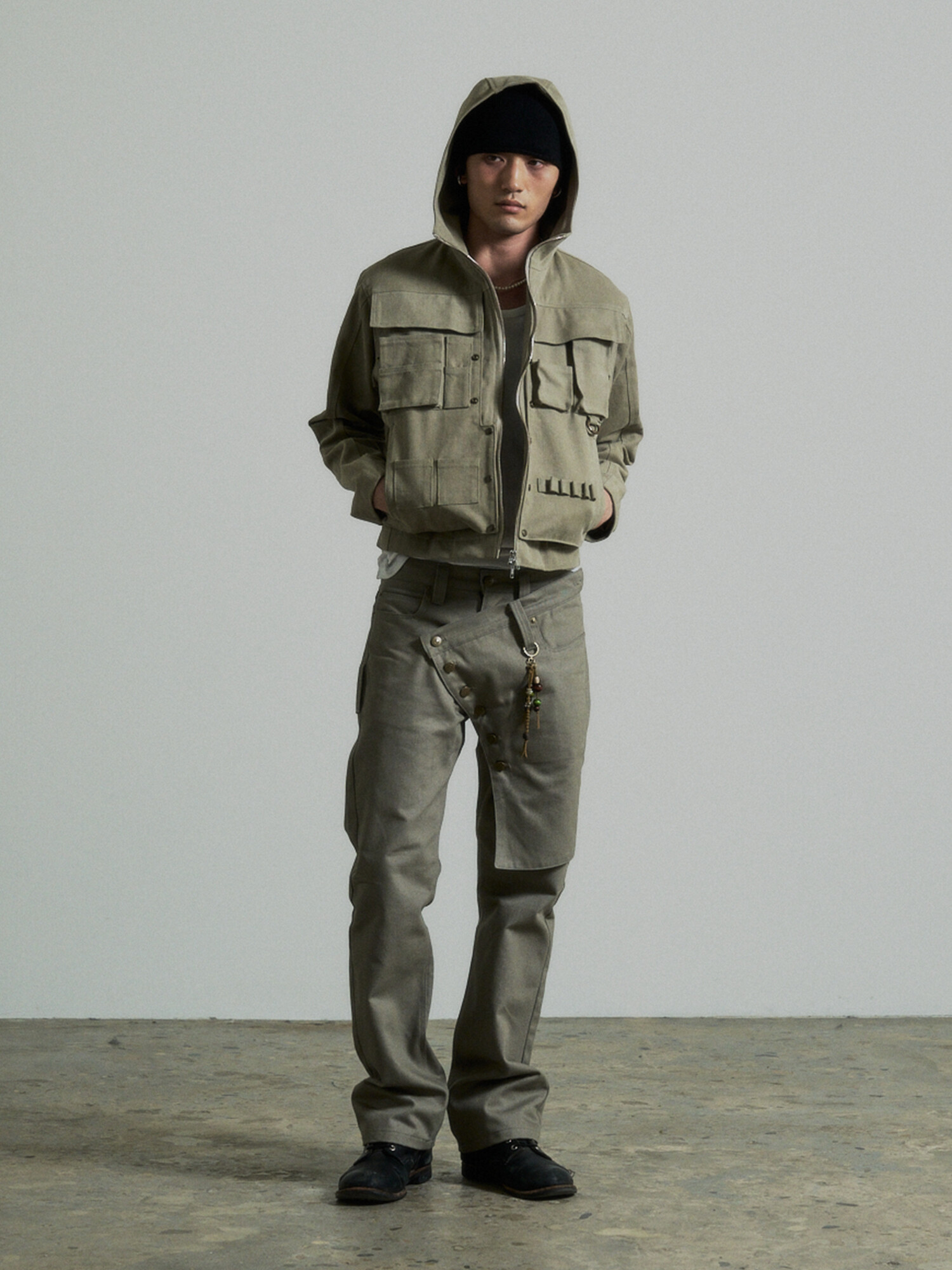- 히든 폴드 멀티포켓 디테일의 자켓입니다.
