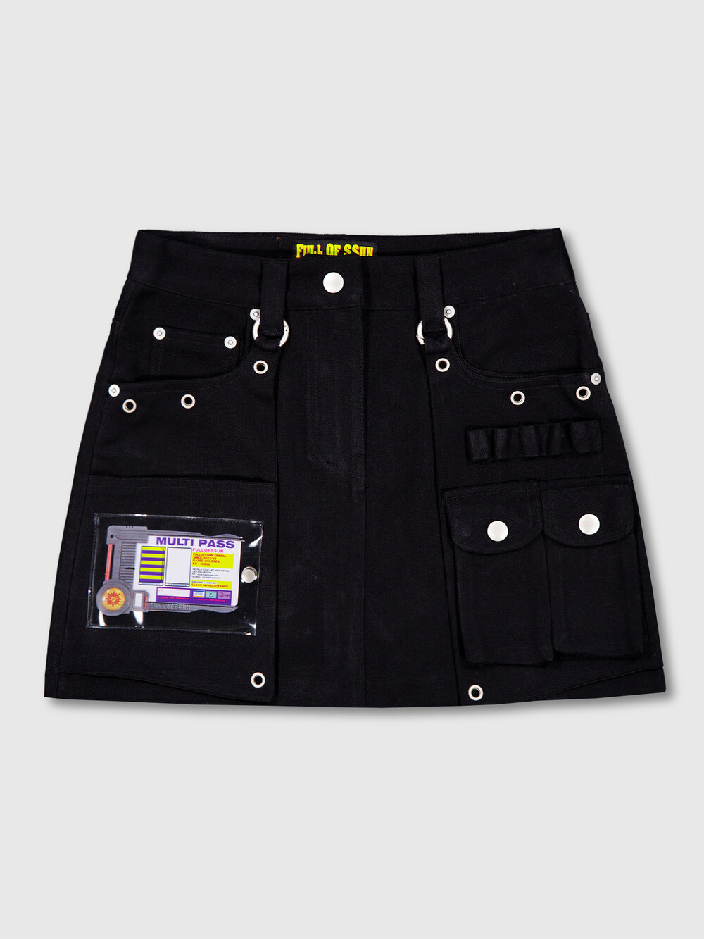 - 25SS 시즌 컨셉영화인 "제5원소" 속 아이코닉한 오브제인 "멀티패스"를 컨셉으로 한 멀티포켓 미니스커트입니다.
