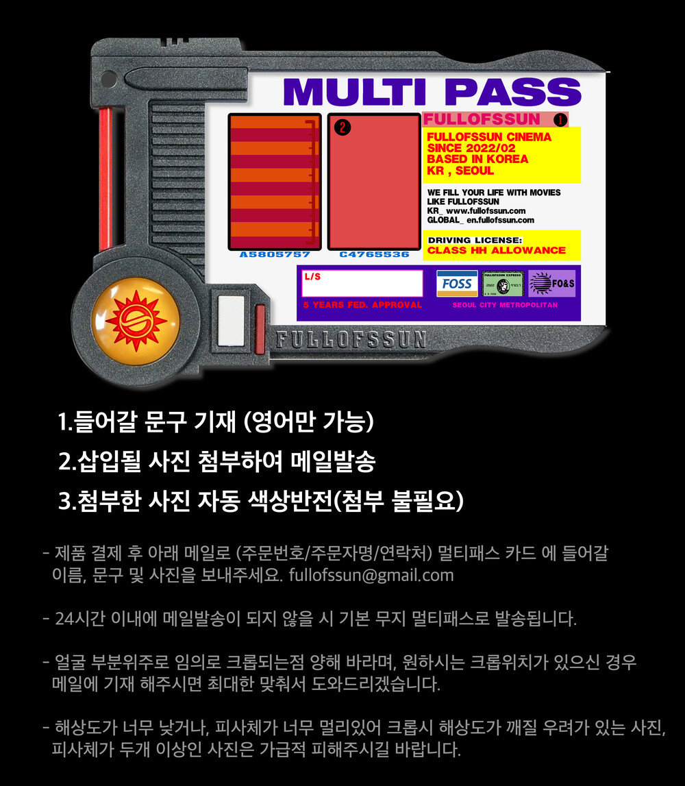- 멀티패스 관련 제품 하나당 멀티패스 카드 한장을 주문제작 하여 보내드립니다.