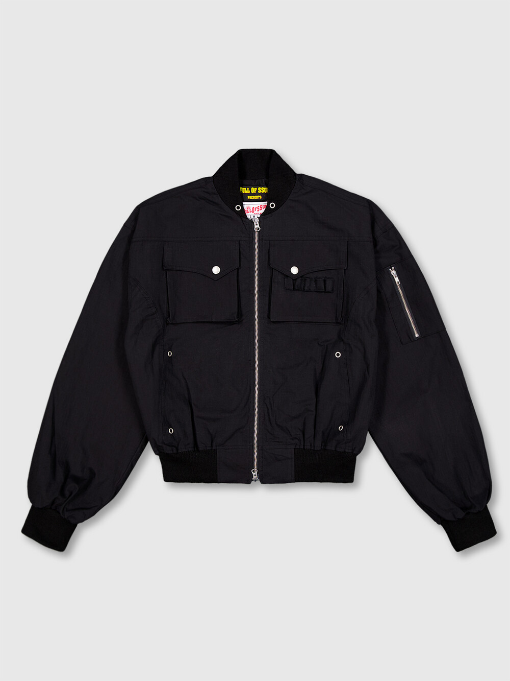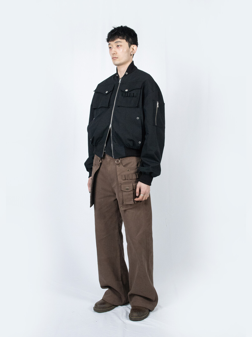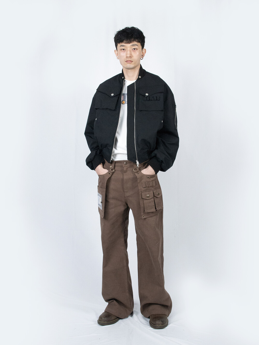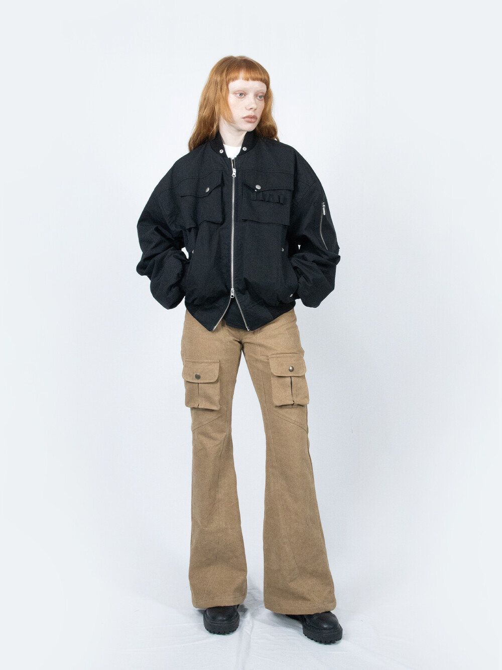 - 립스탑 원단의 오버핏 실루엣의 크롭한 멀티포켓 봄버자켓입니다.