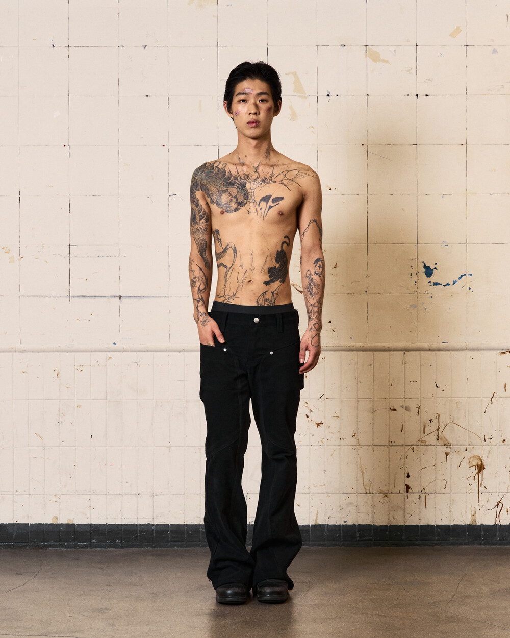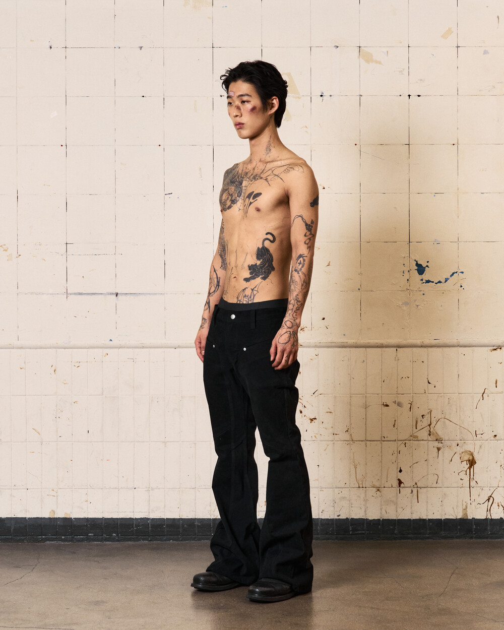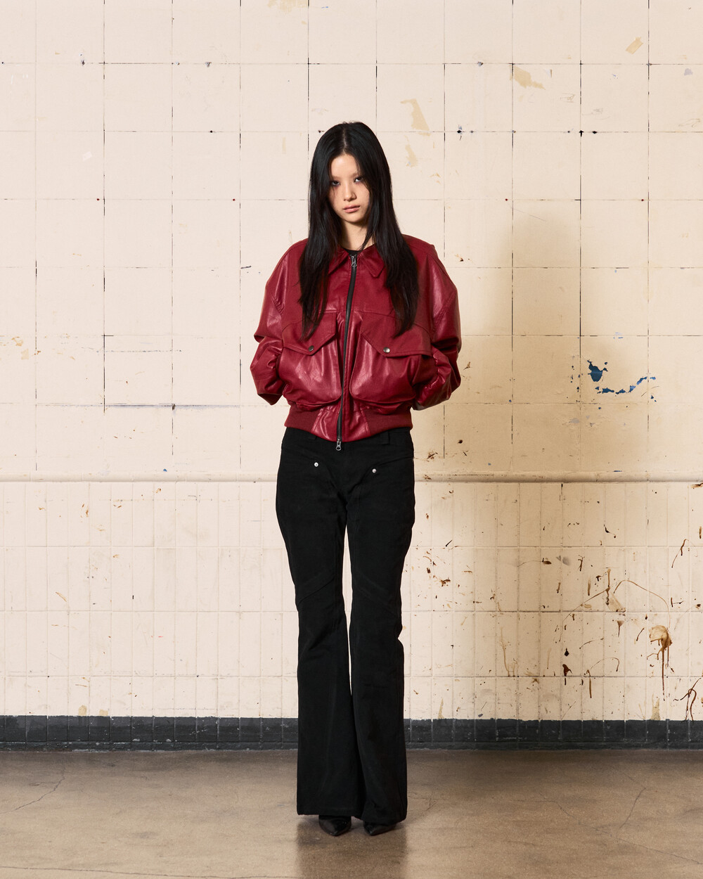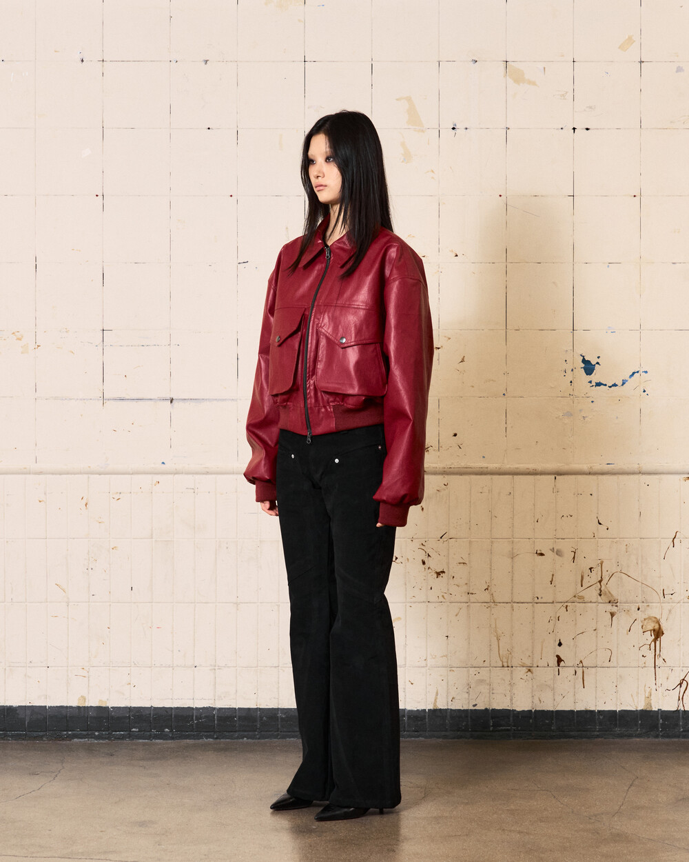 - 아이코닉한 커브 절개 디테일이 들어간 플레어핏의 로우라이즈 팬츠입니다.