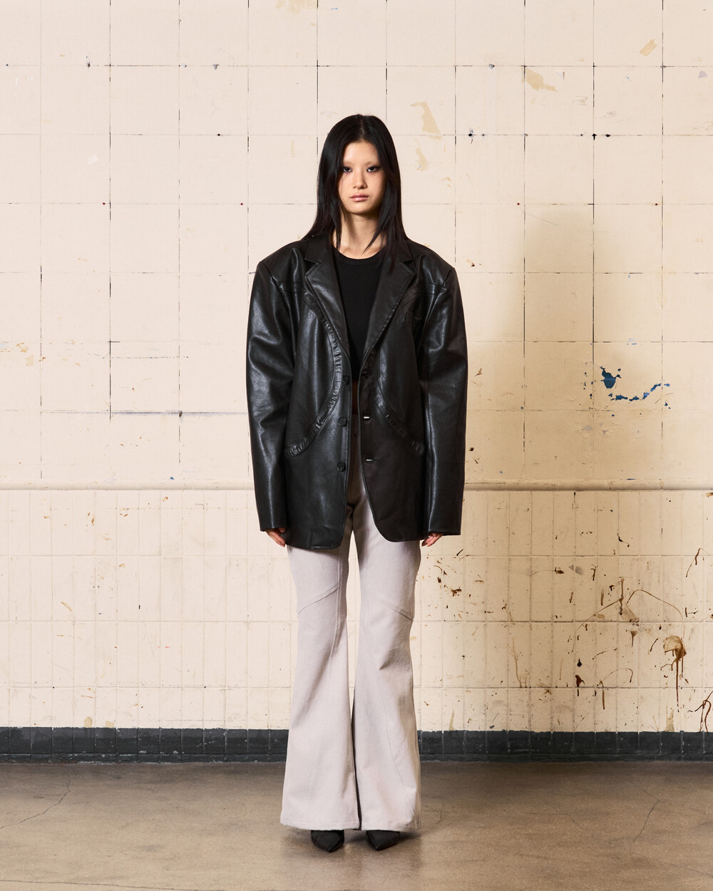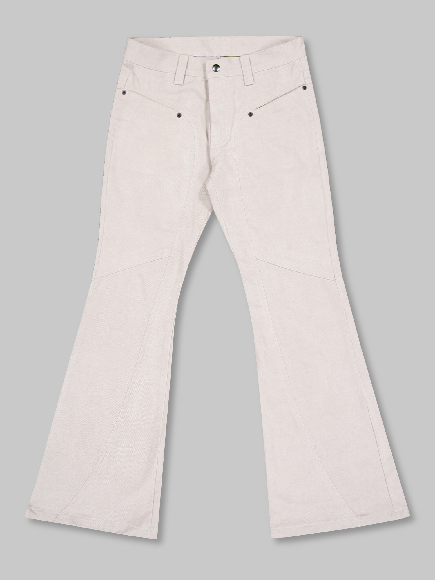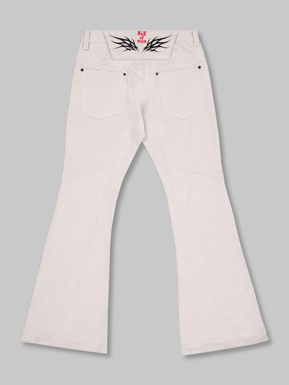 - 아이코닉한 커브 절개 디테일이 들어간 플레어핏의 로우라이즈 팬츠입니다.