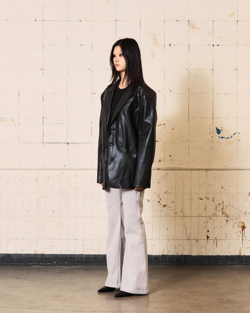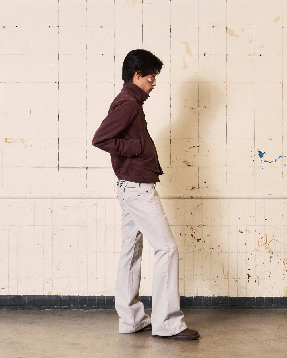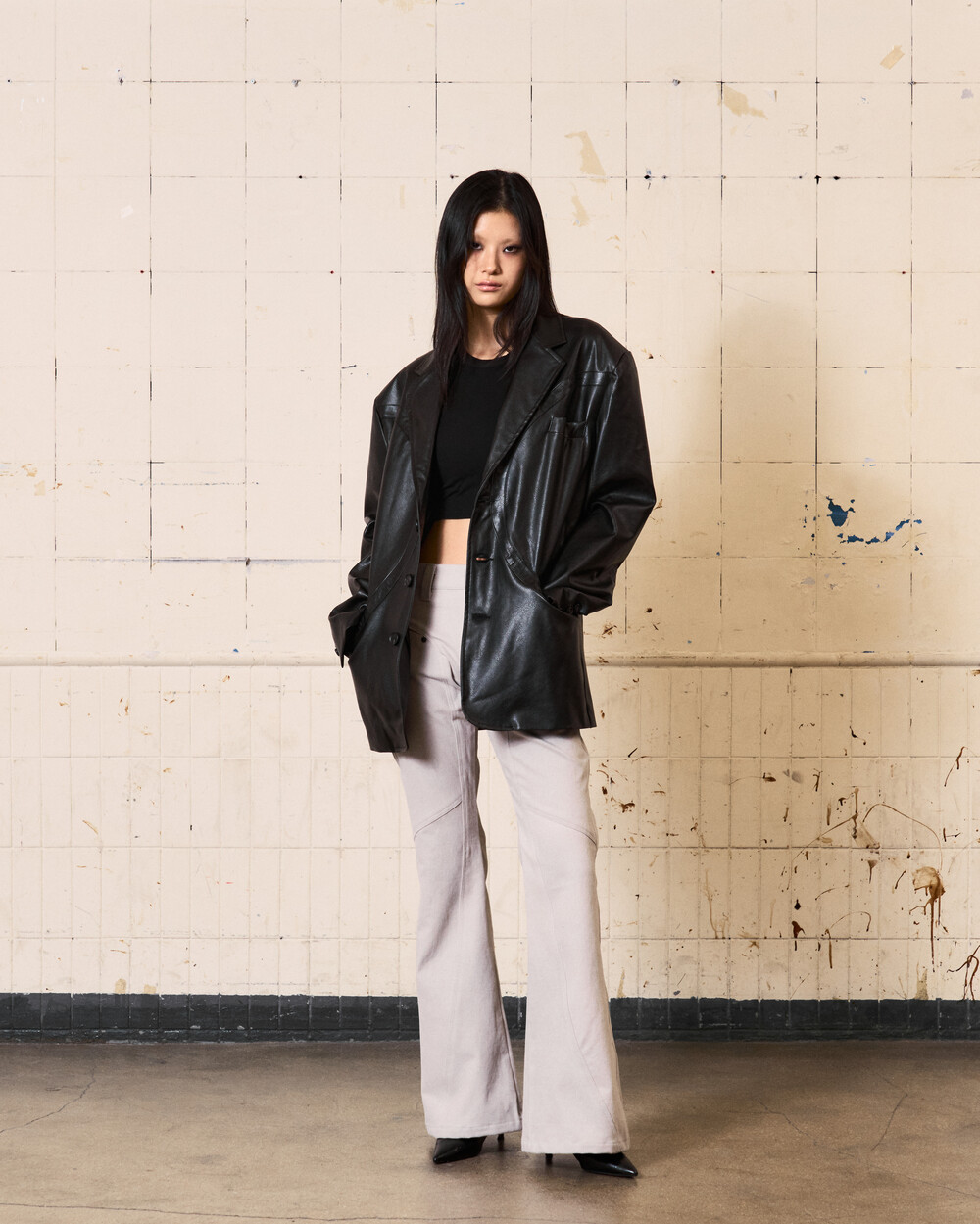 - 아이코닉한 커브 절개 디테일이 들어간 플레어핏의 로우라이즈 팬츠입니다.