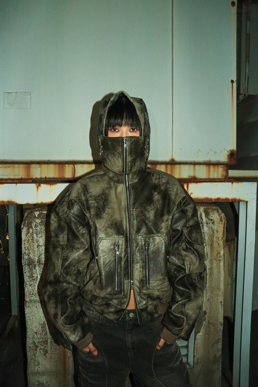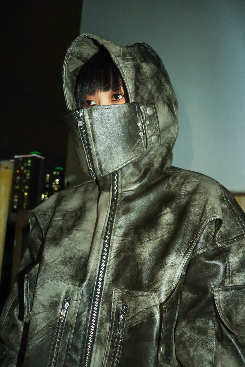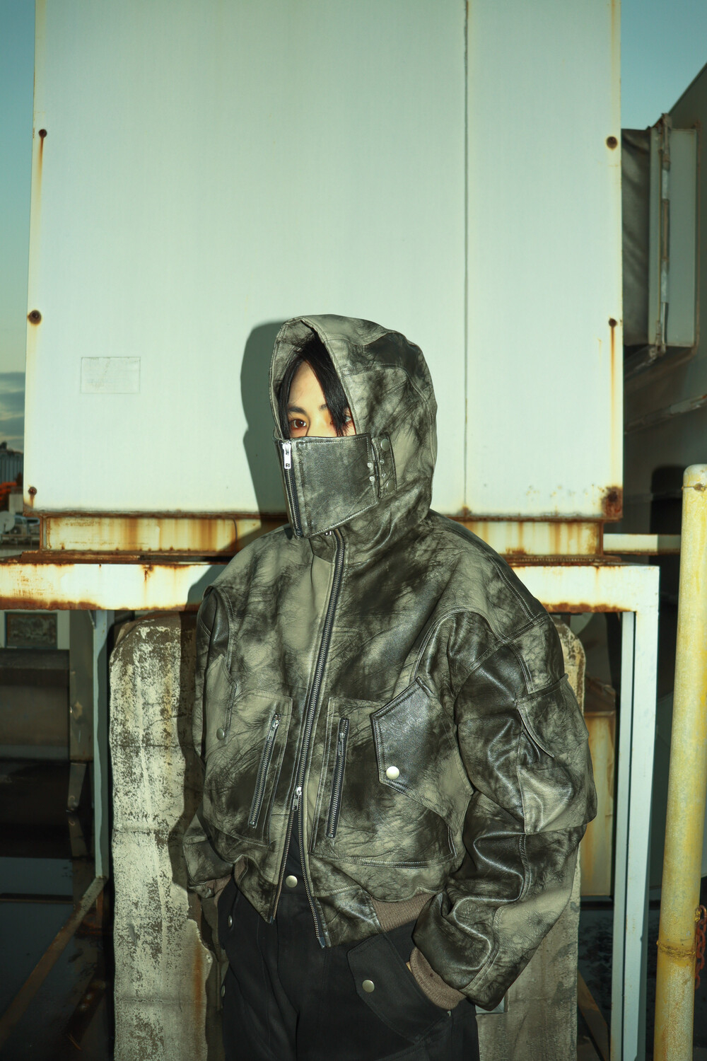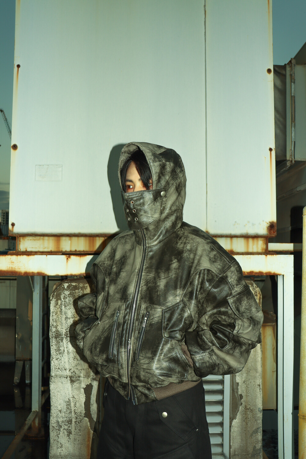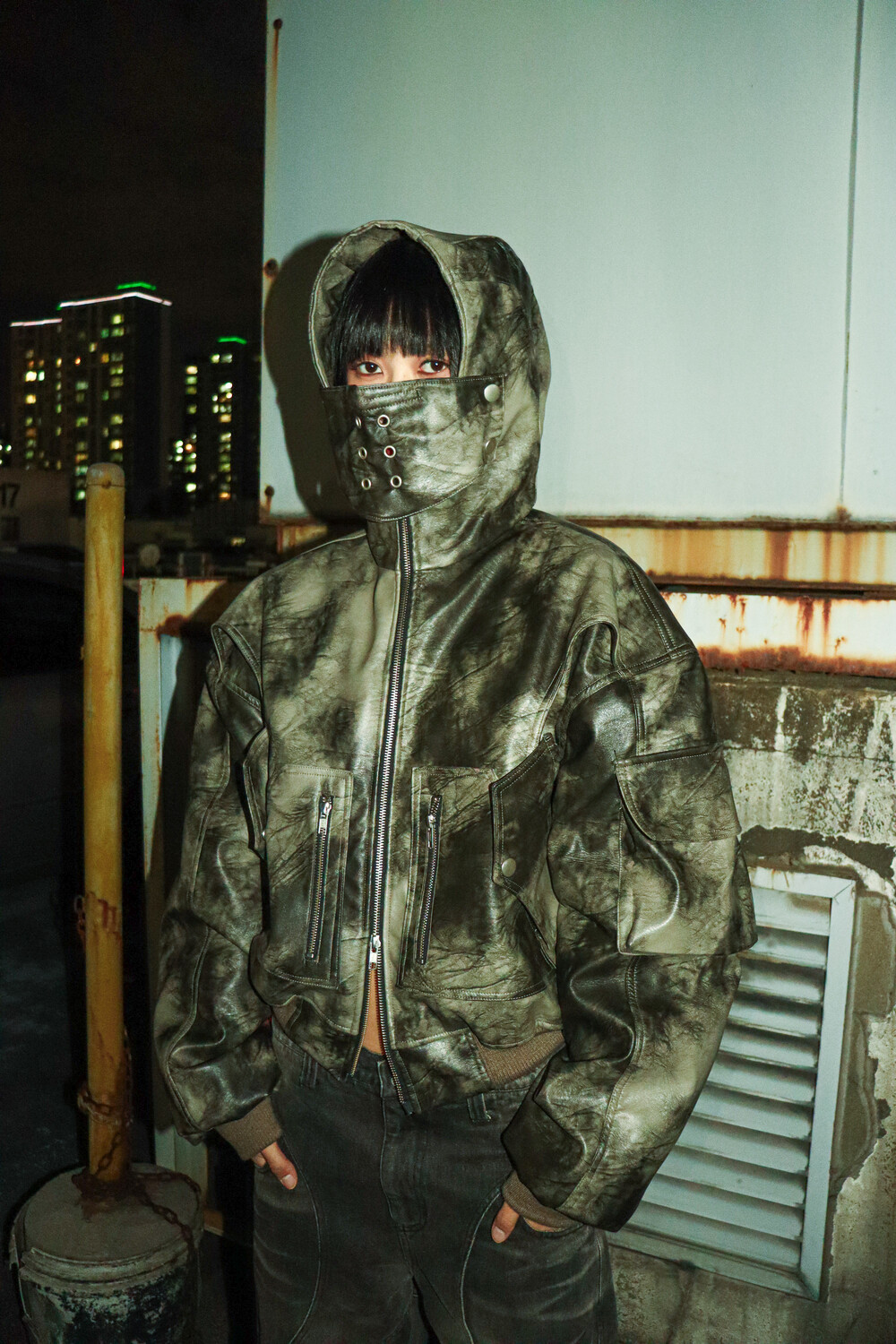 - 후드에 탈부착이 가능한 마스크가 포함된 워싱 레더자켓입니다. 기본 마스크(아일렛 마스크)가 포함 되어있으며,