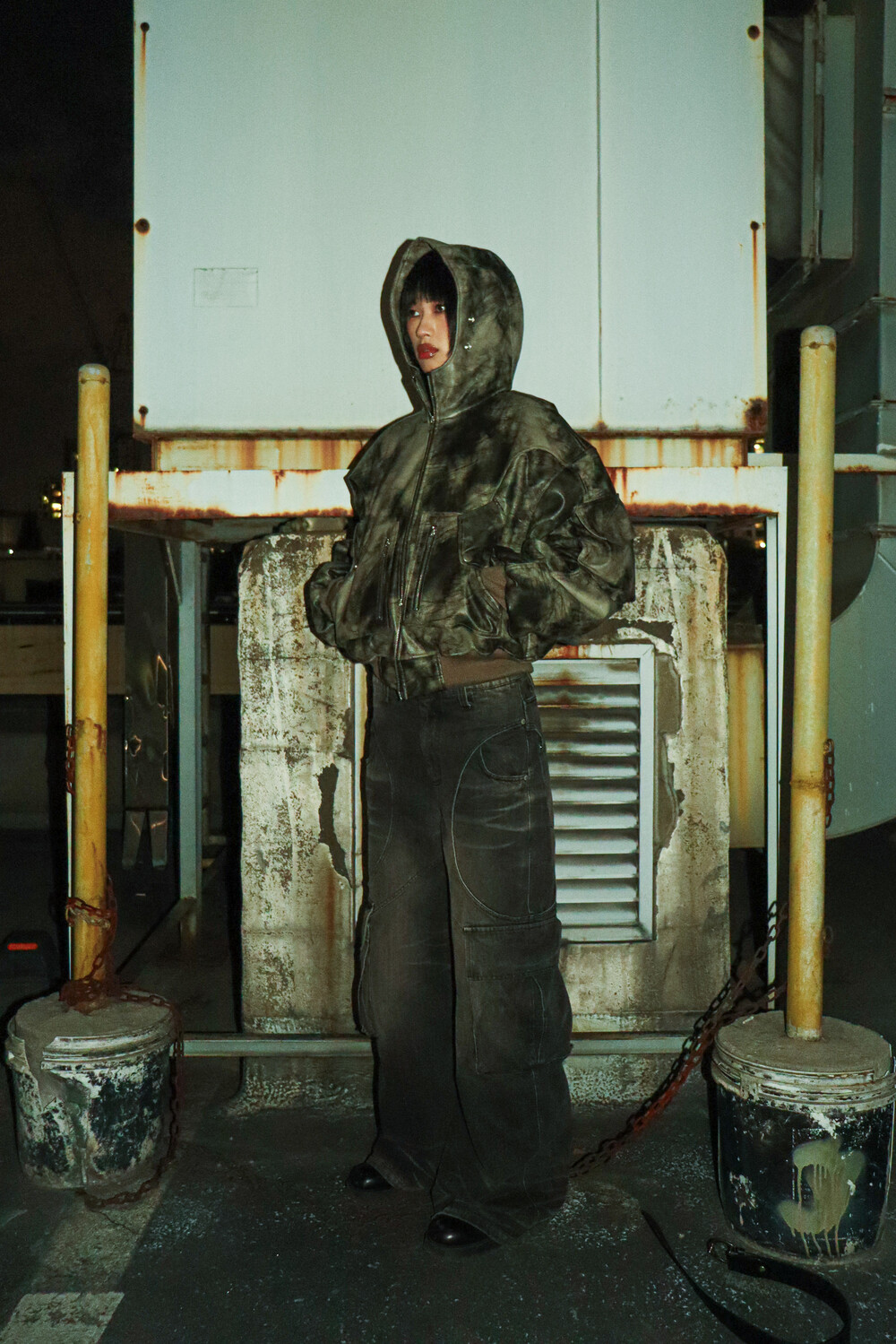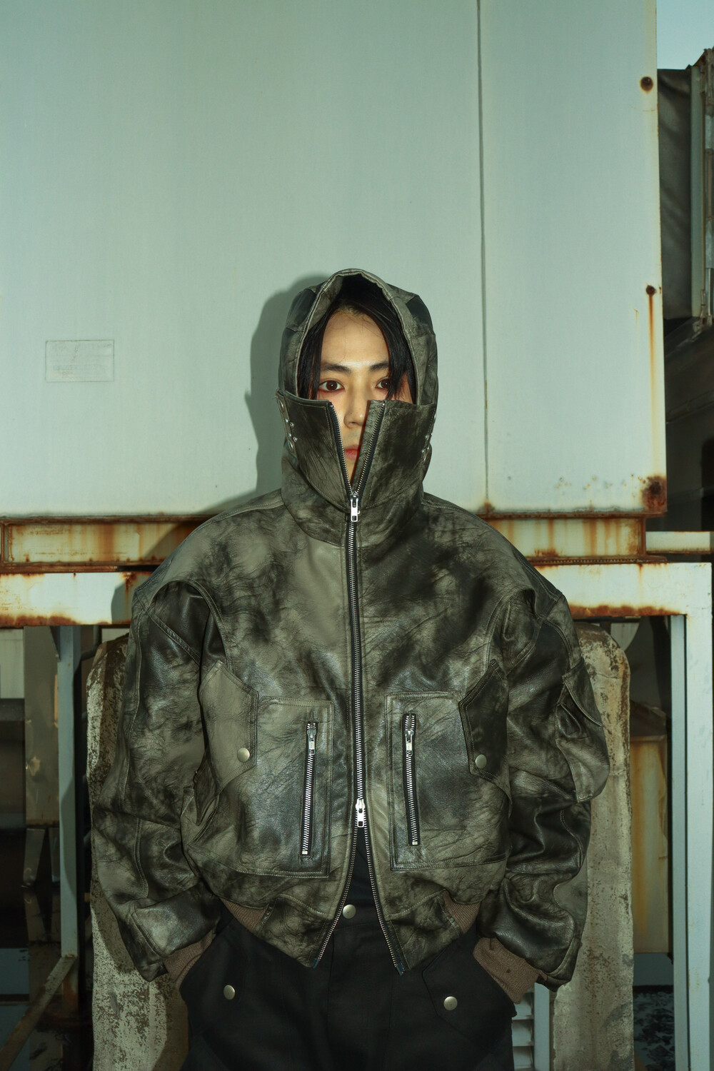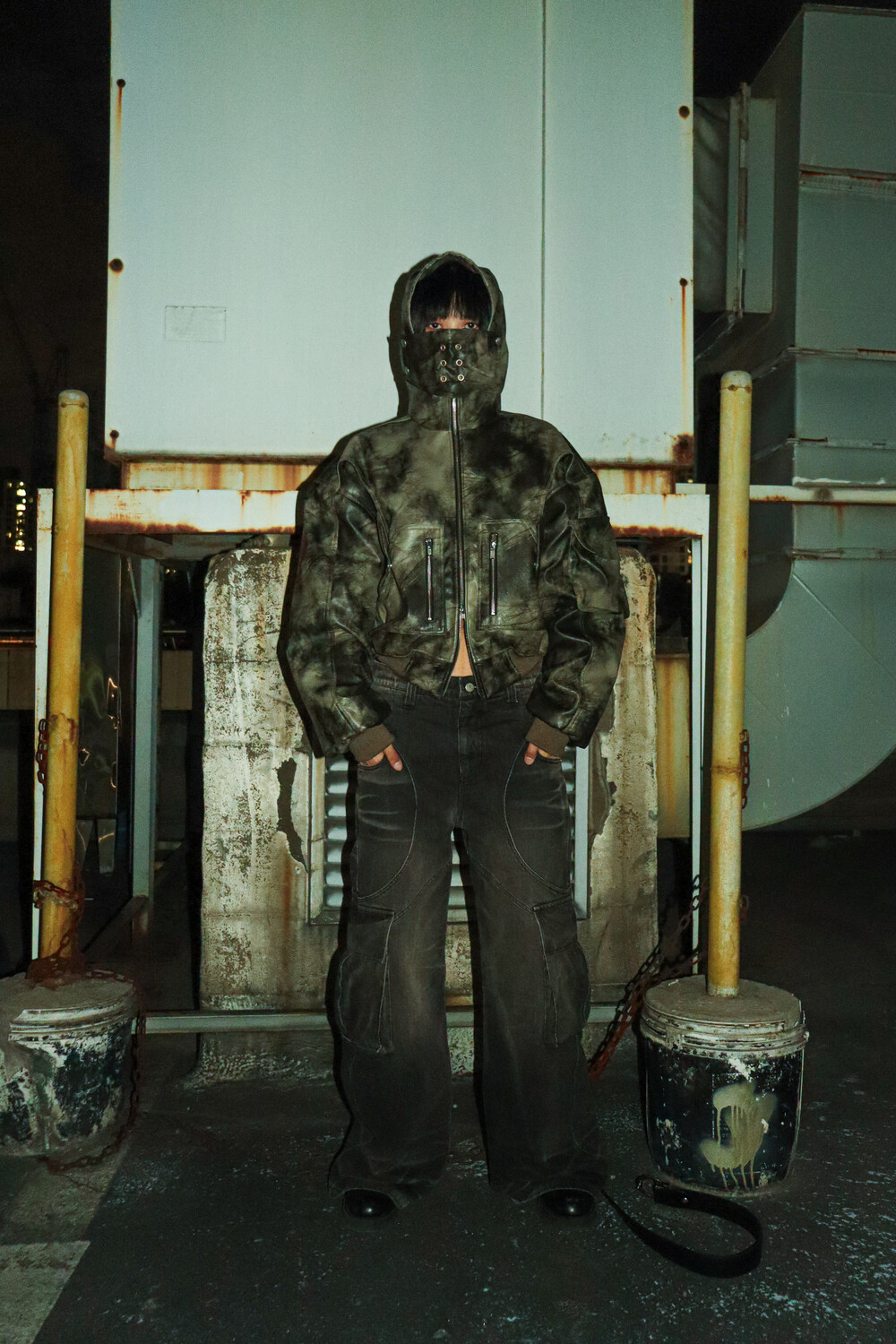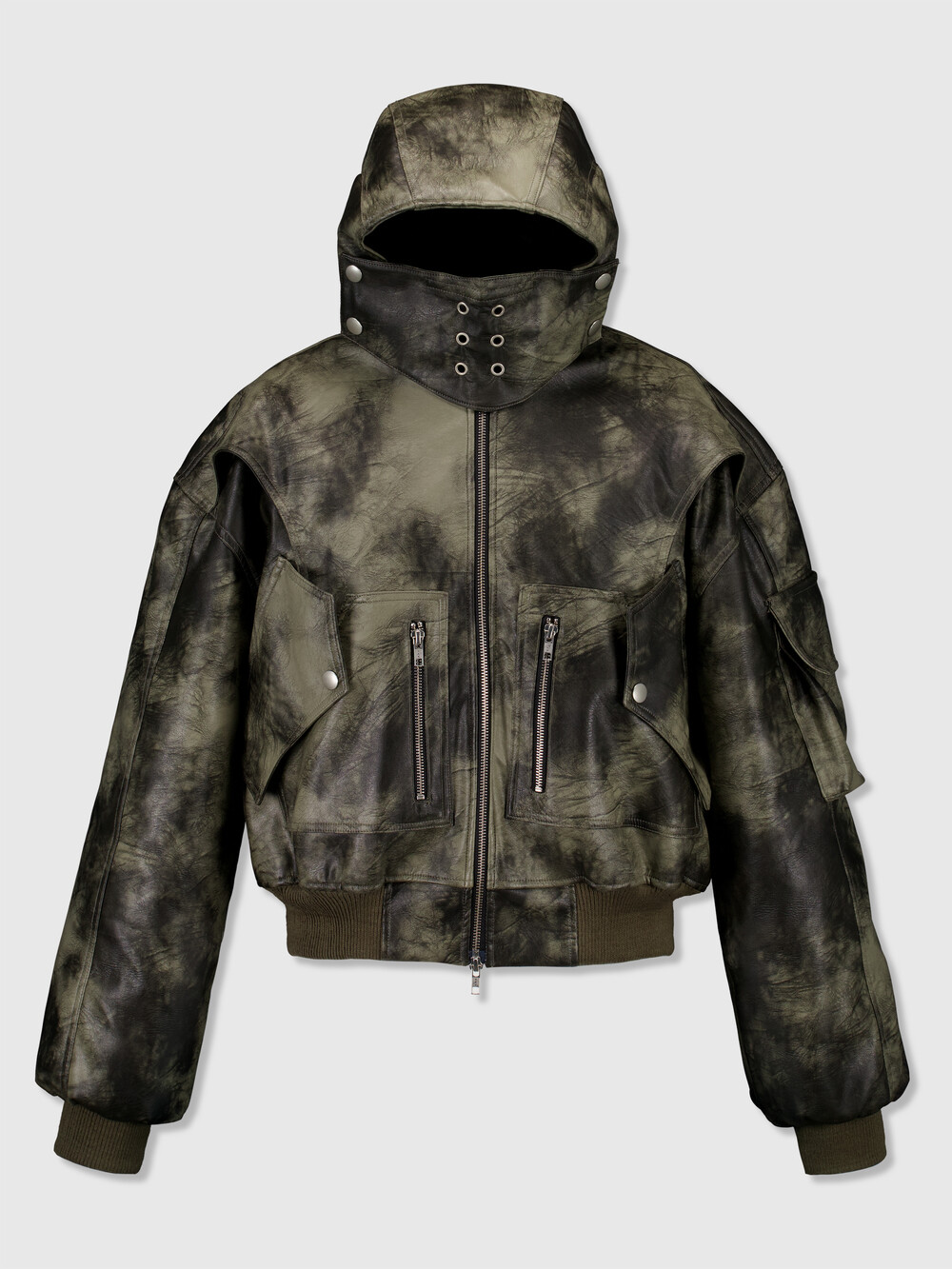 - 후드에 탈부착이 가능한 마스크가 포함된 워싱 레더자켓입니다. 기본 마스크(아일렛 마스크)가 포함 되어있으며,