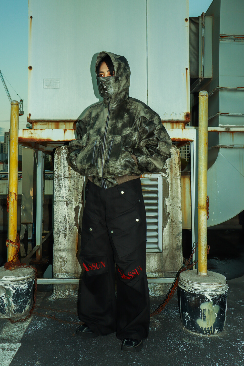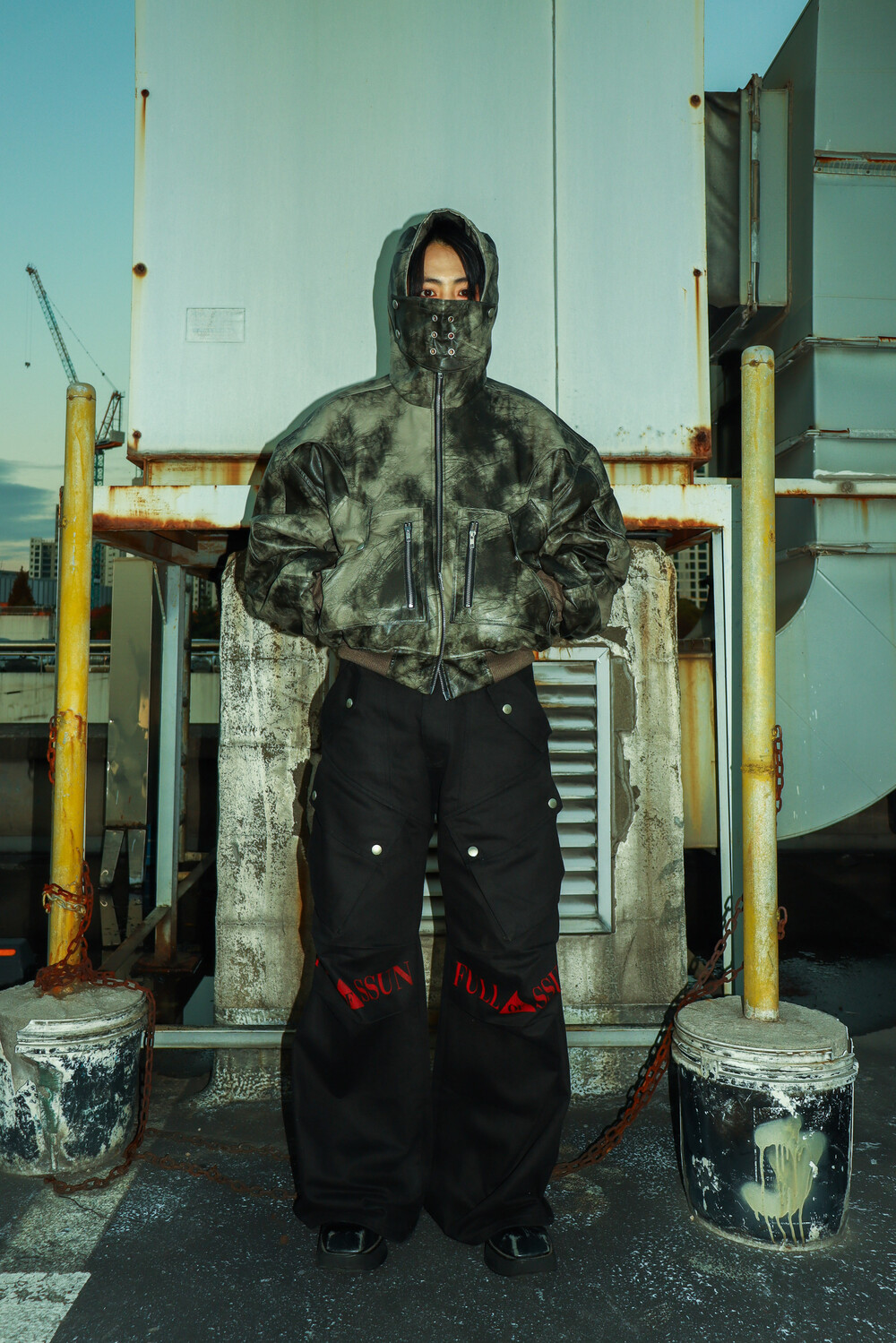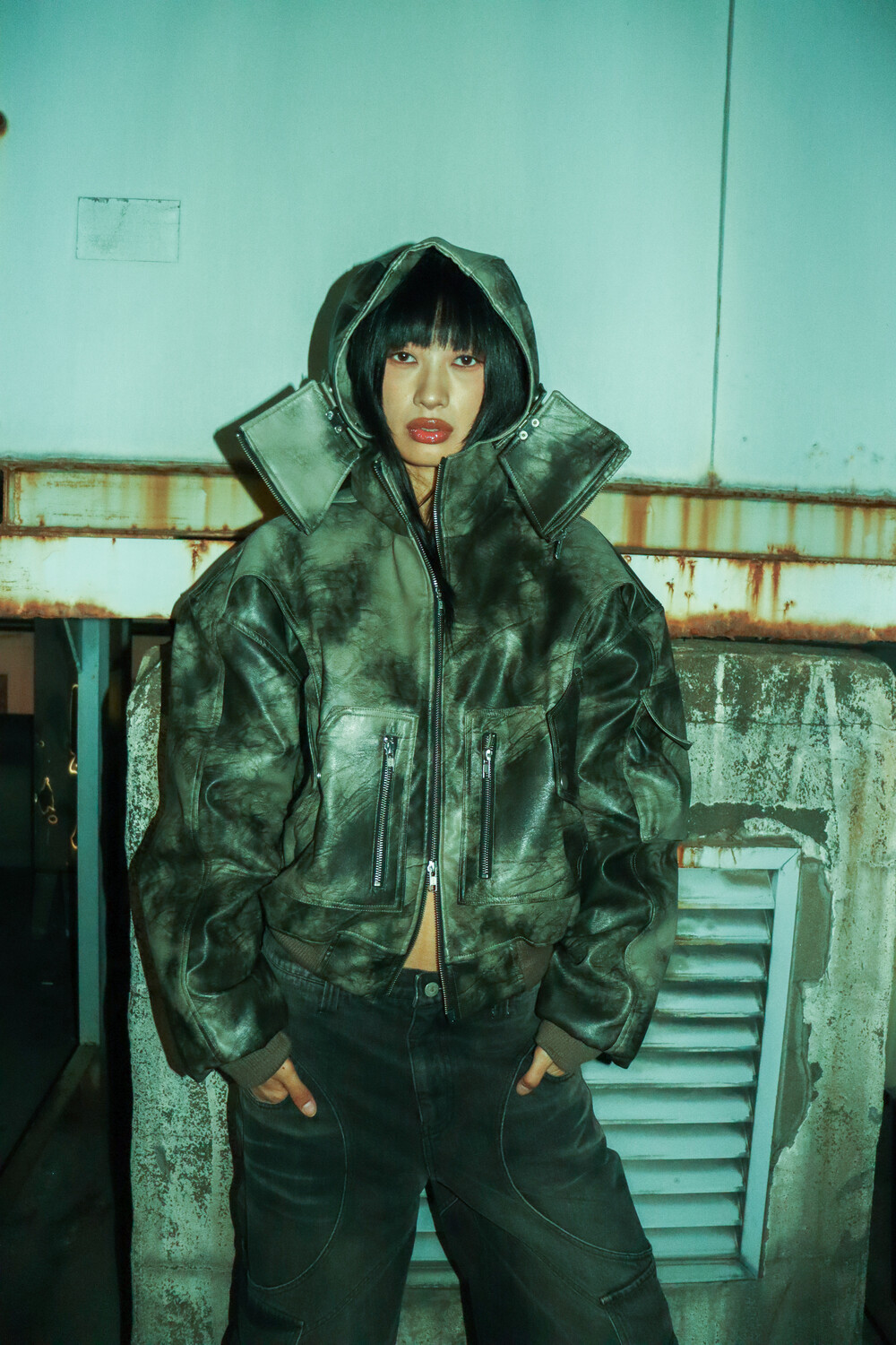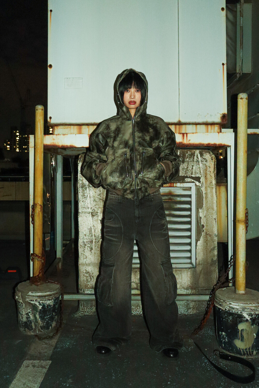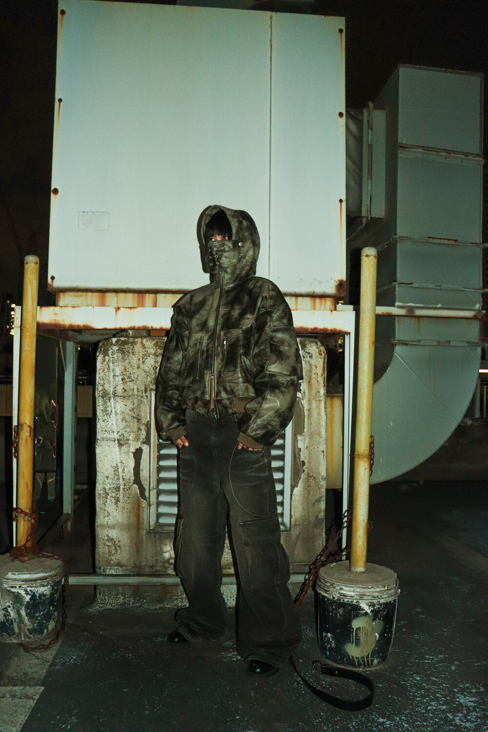 - 후드에 탈부착이 가능한 마스크가 포함된 워싱 레더자켓입니다. 기본 마스크(아일렛 마스크)가 포함 되어있으며,