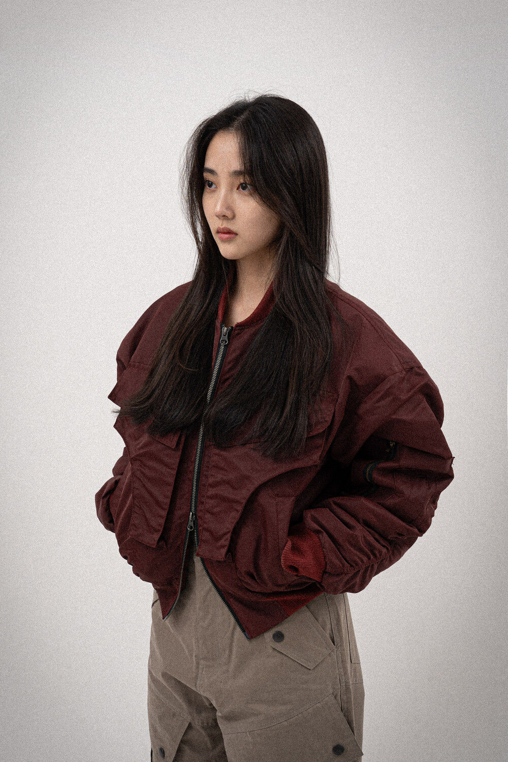 (4oz 누빔) Gunpocket Shirring MA-1 Jacket (Burgundy)