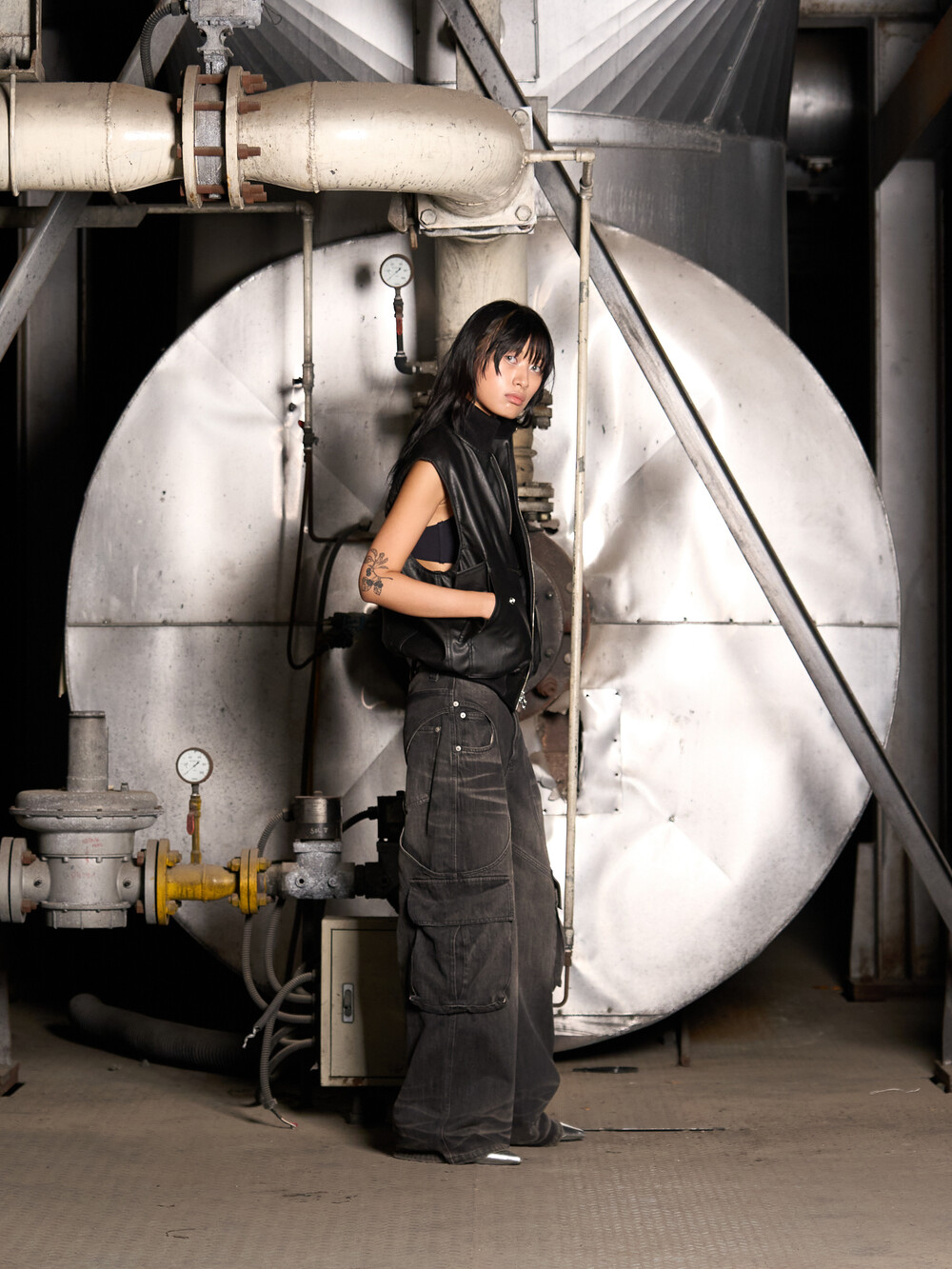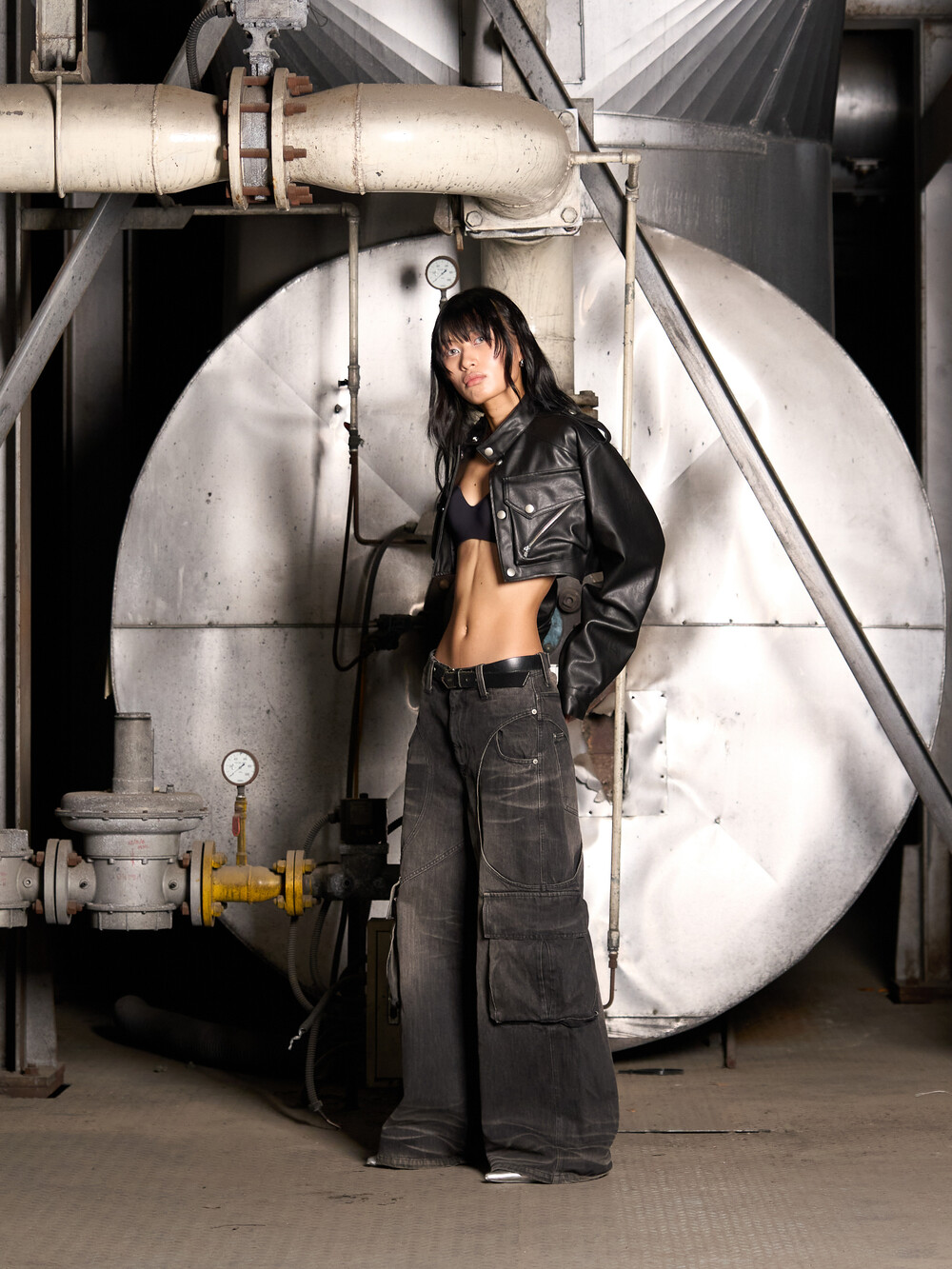 - 뒤판 허리밴드 플러그 자수로고 디테일