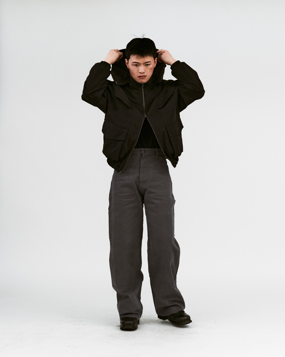 - 컷아웃 디테일의 워크팬츠